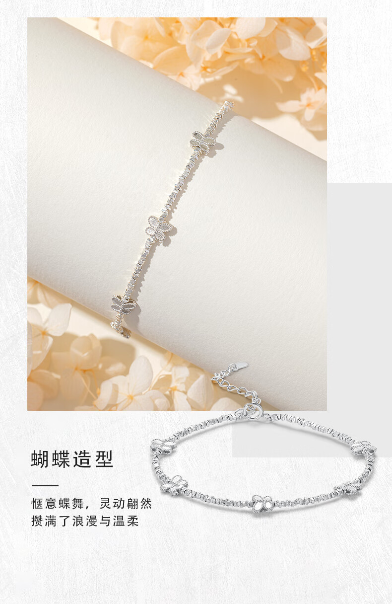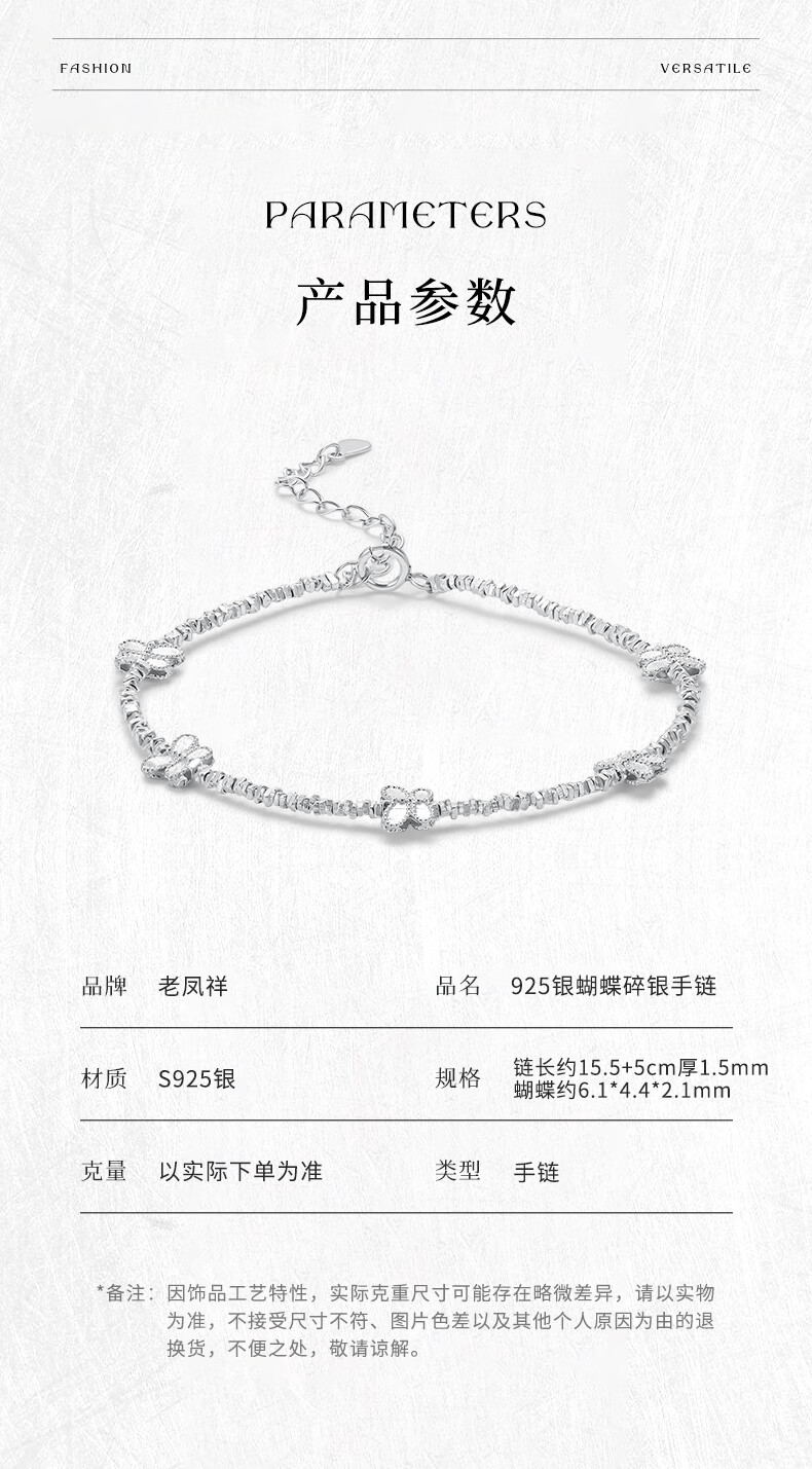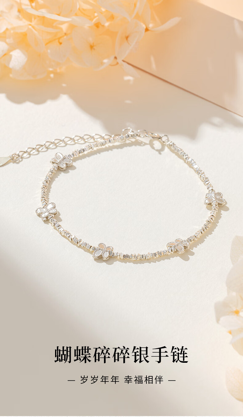 老凤祥S925银手链手串碎碎银百搭首饰情人节生日礼物送女友老婆爱人 S925银蝴蝶碎银手链
