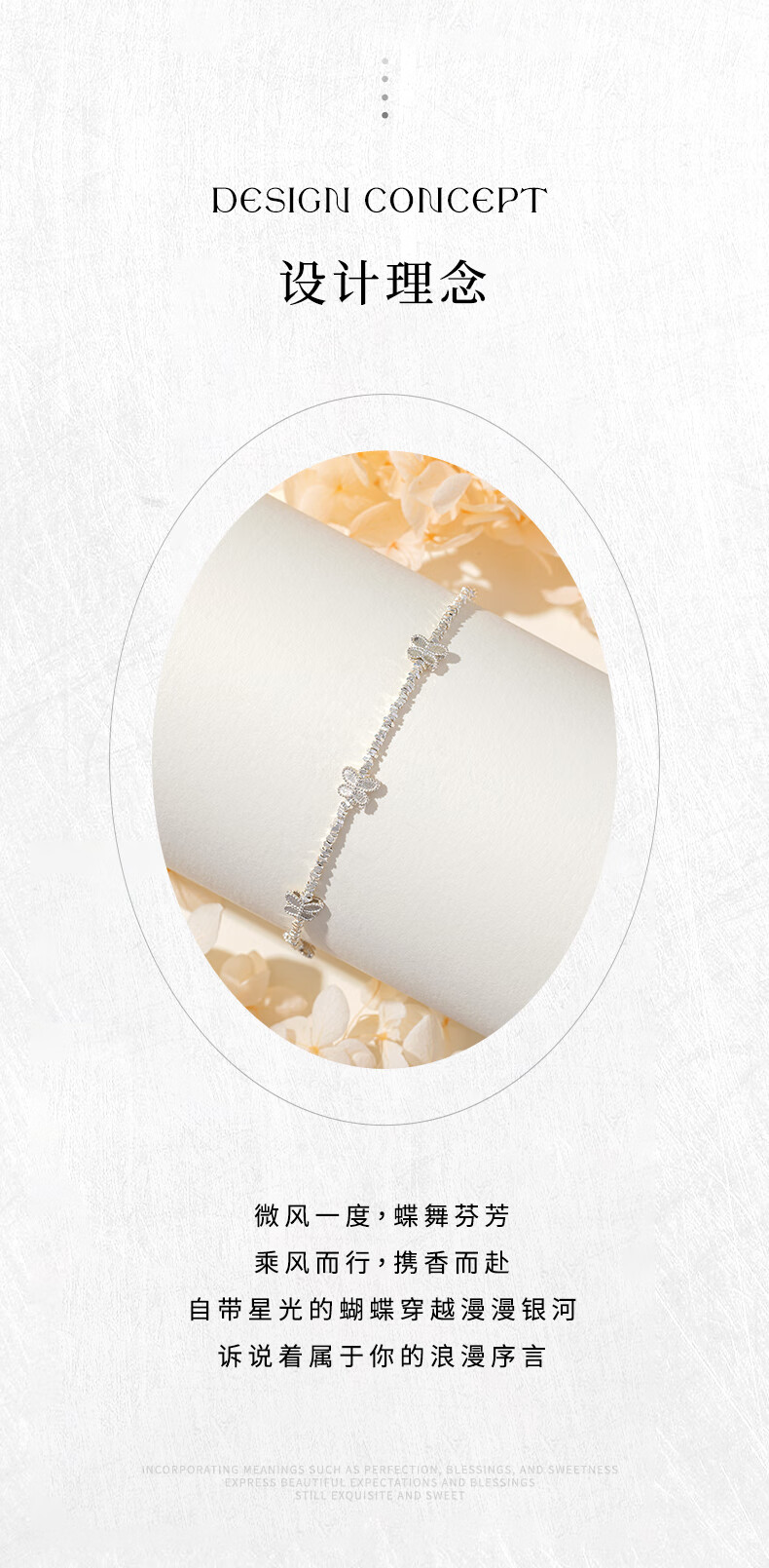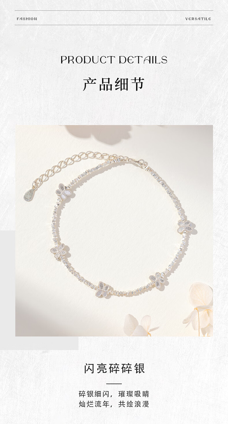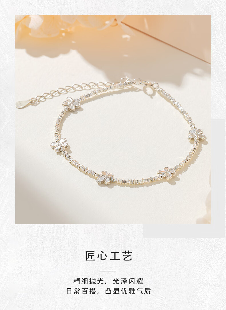 老凤祥S925银手链手串碎碎银百搭首饰情人节生日礼物送女友老婆爱人 S925银蝴蝶碎银手链