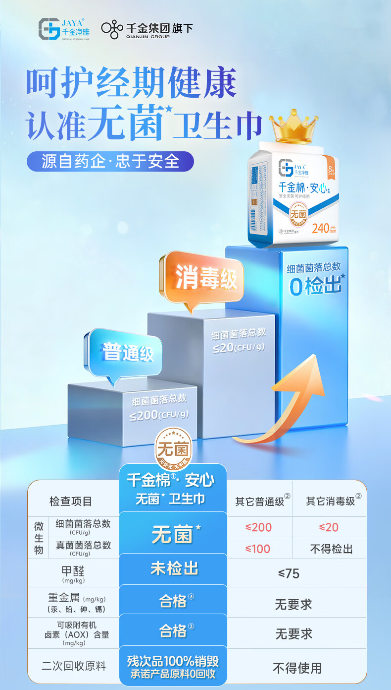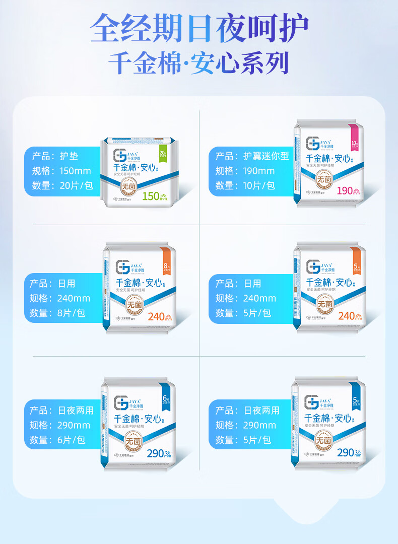 千金净雅卫生巾纯棉姨妈巾日用夜用迷你量贩套装整箱批发姨妈巾 超长夜用 420mm 30片