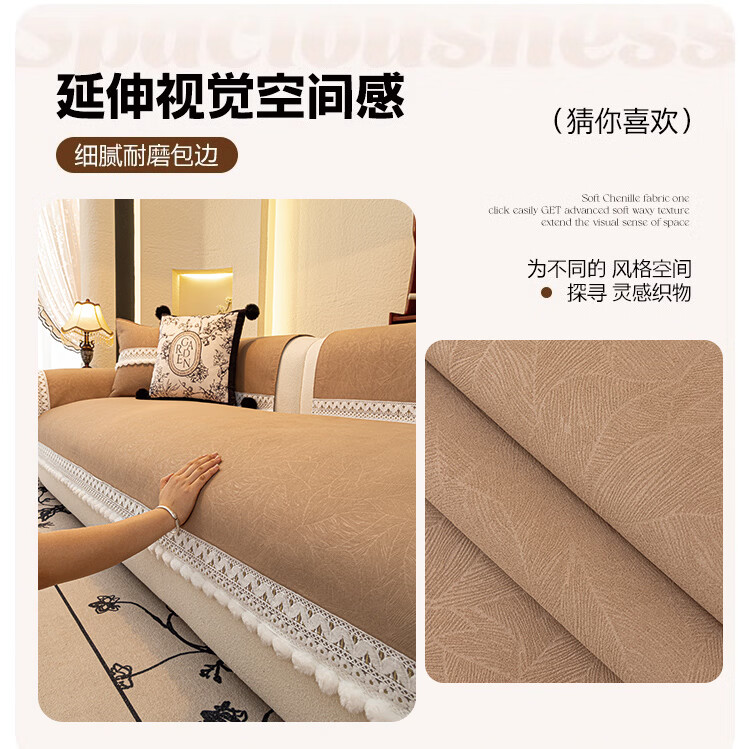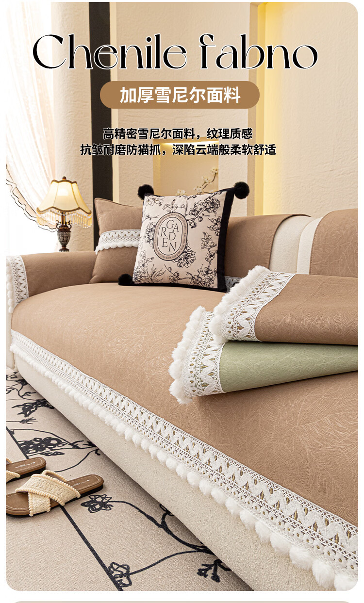 金拾美月雪尼尔沙发垫2026新款四季通用皮沙发坐垫套防滑高级沙发盖布巾 花芝-咖色 70cm*70cm