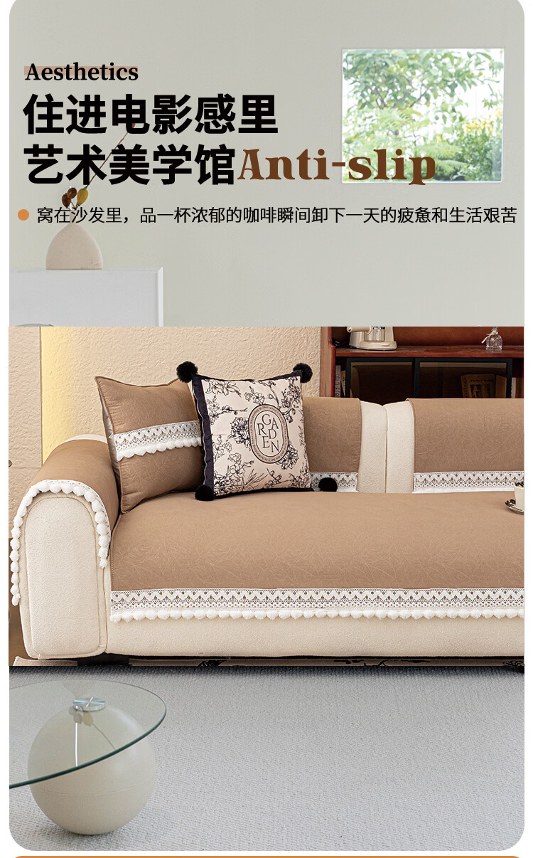 金拾美月半边绒沙发盖布巾冬2026新款沙发垫轻奢高级感简约现代防滑套罩 心愿沙发巾-黑棕 180cm*130cm (适用于单人位/脚踏)