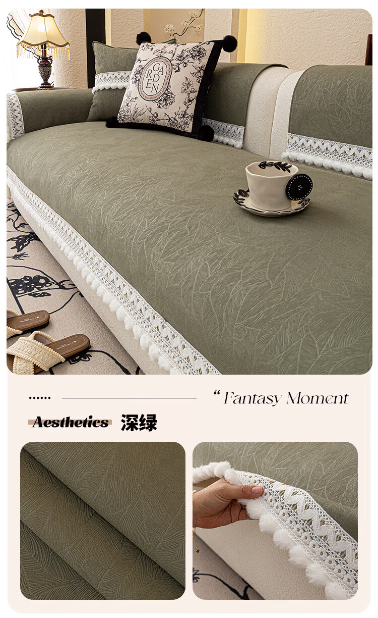 缔卓怡高级感裙边沙发盖布巾2026新款防猫抓四季通用全盖坐垫防滑套罩 繁花盖布-绿色 180cm*130cm (适用于单人位/脚踏)