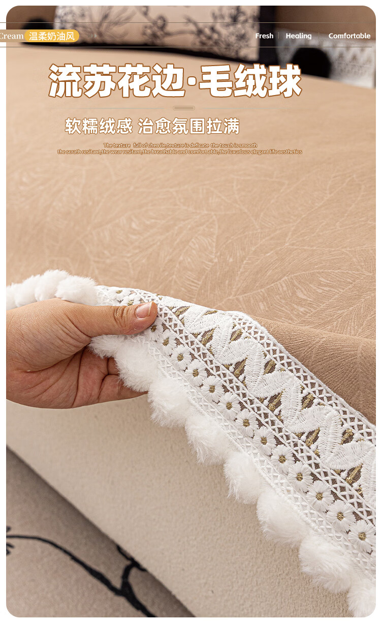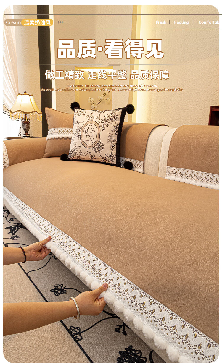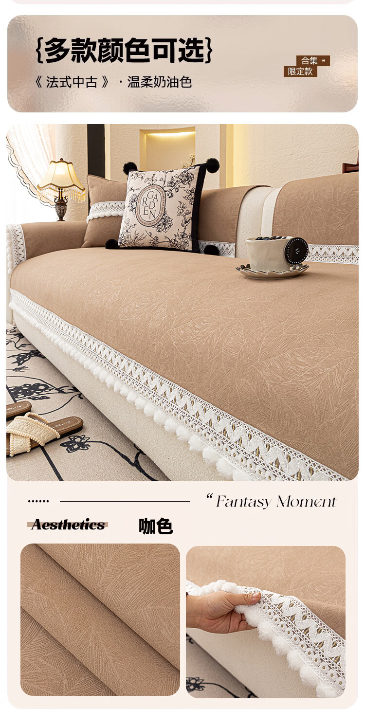 金拾美月冬季半边绒沙发盖布巾2026新款奶油风沙发垫一整张全盖防滑套罩 盖巾雅缦-米白 180cm*130cm (适用于单人位/脚踏)