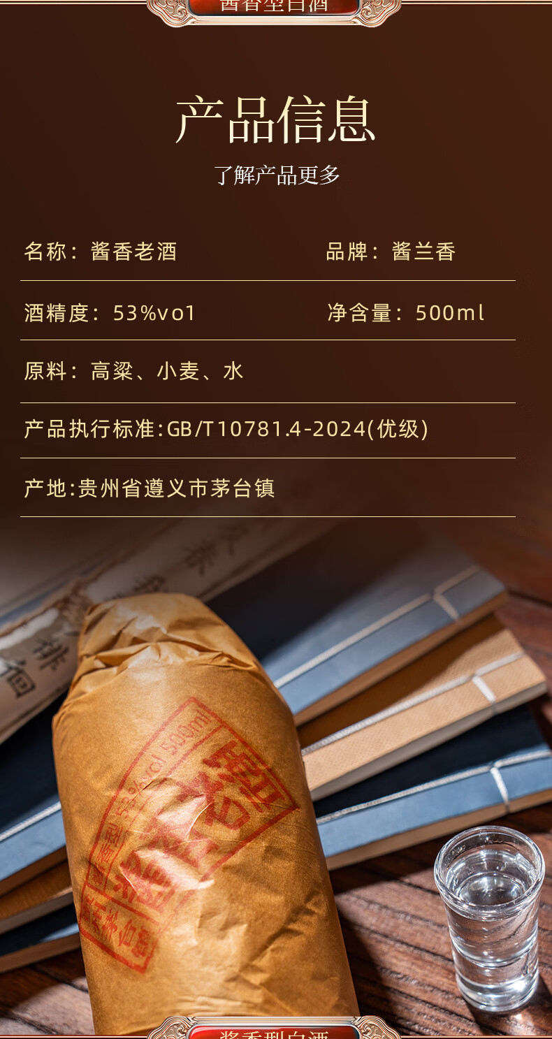 酱兰香贵州茅台镇 酱香型白酒整箱 53度高粱酒 纯粮食酿酒 老酒礼盒 53度 500mL 6瓶 酱香老酒