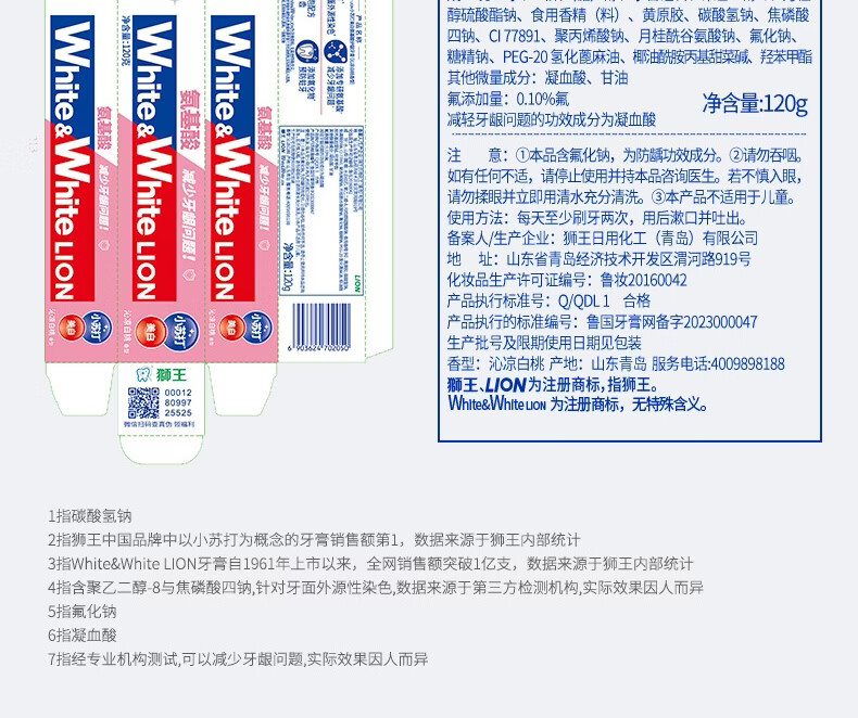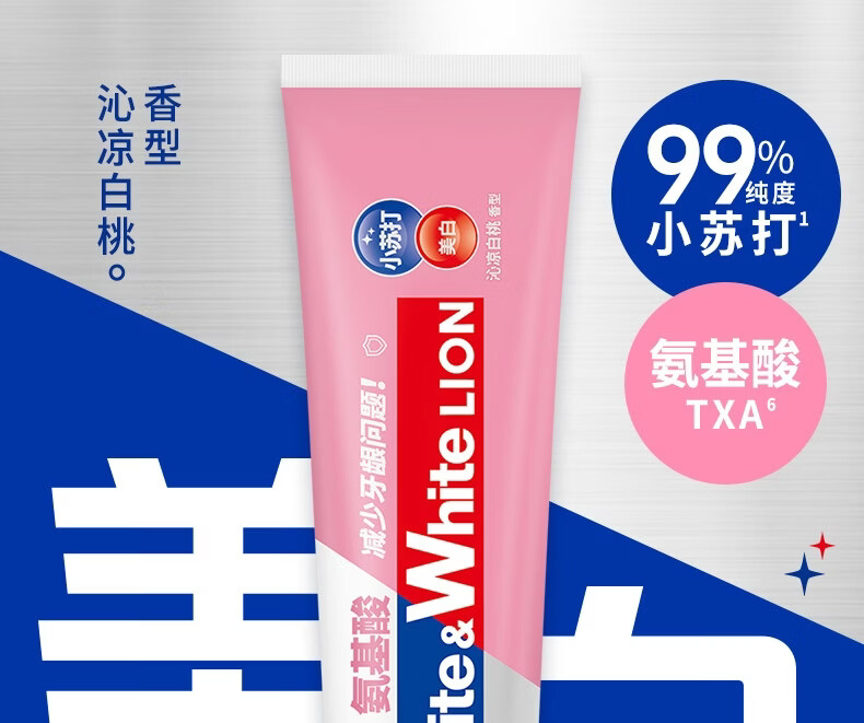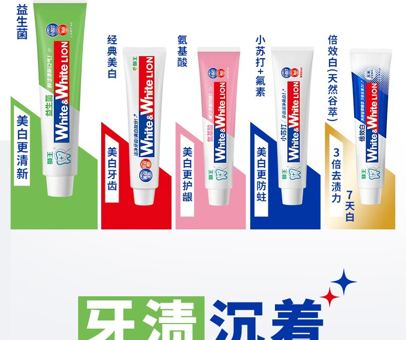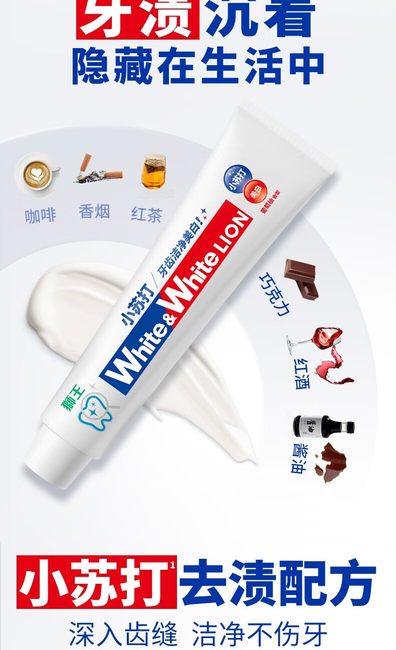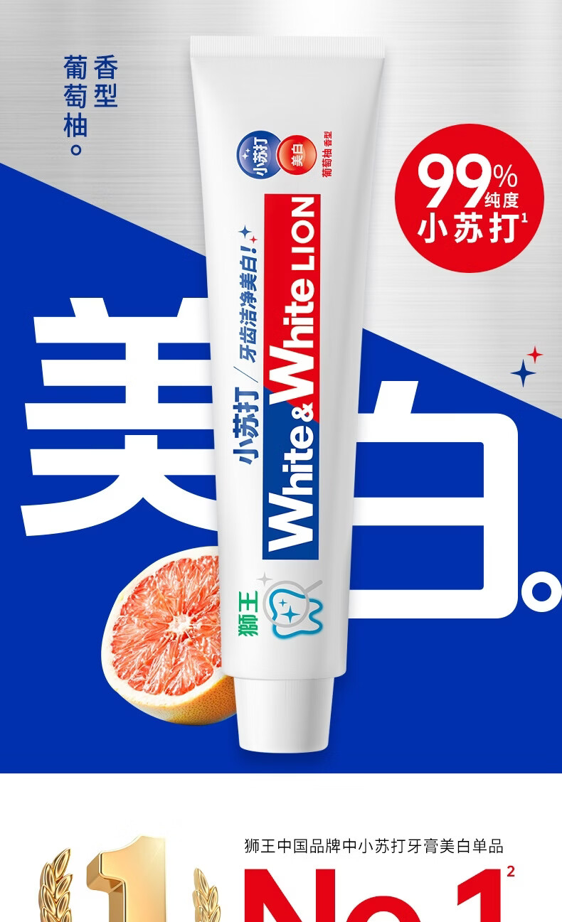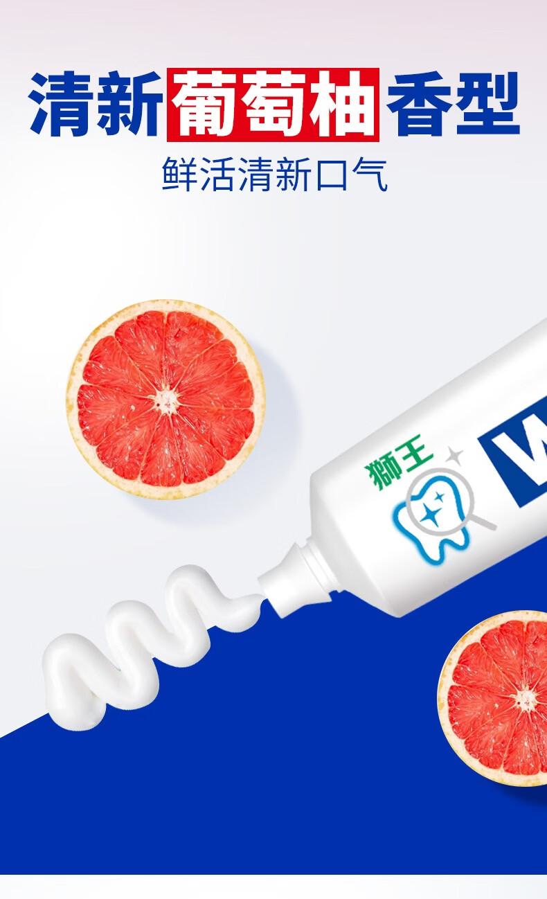 狮王(Lion)WhiteWhite小苏打牙膏美白护龈去黄去牙渍含氟 美白囤货-葡萄柚青柠白桃120g*6