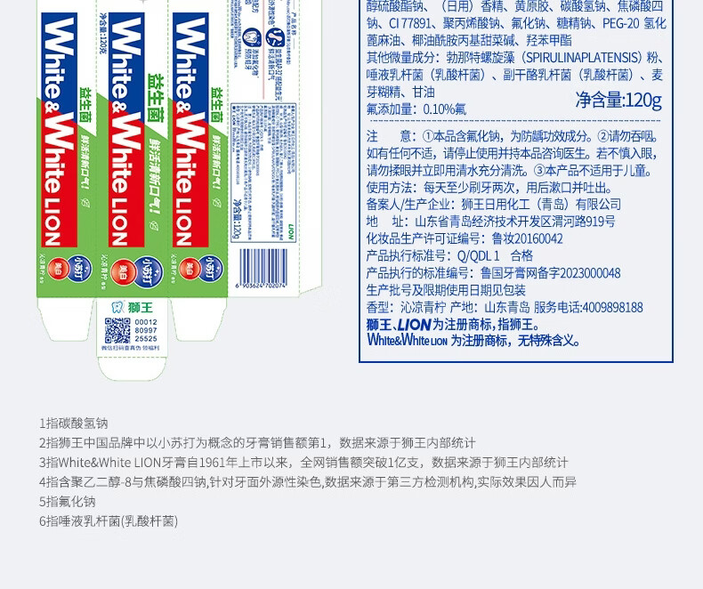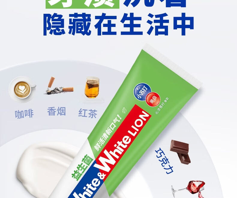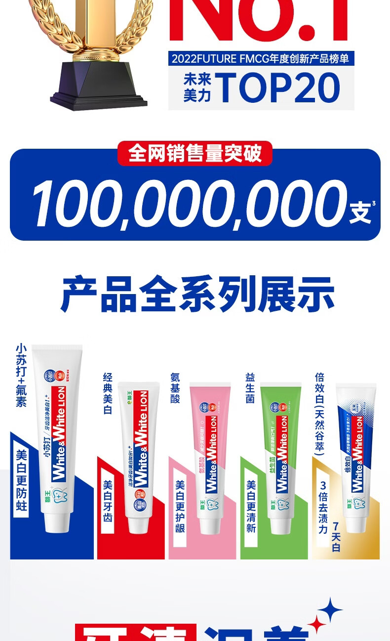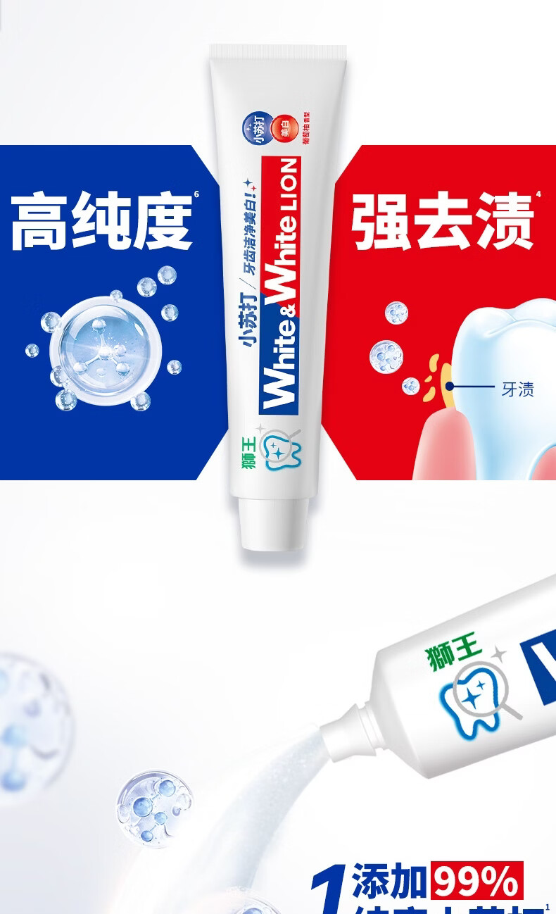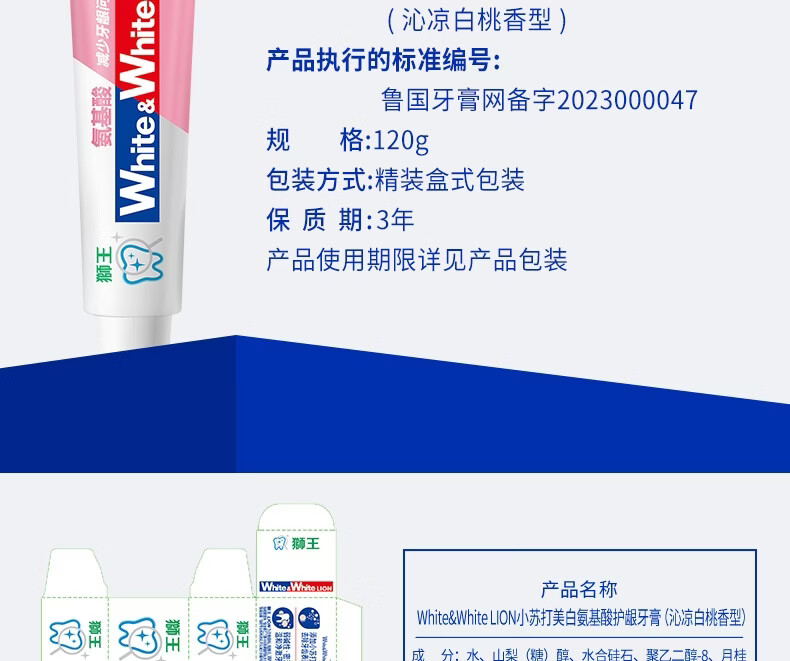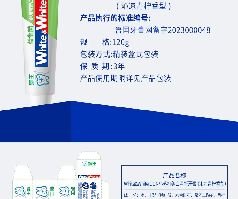 狮王(Lion)WhiteWhite小苏打牙膏美白护龈去黄去牙渍含氟 美白囤货-葡萄柚青柠白桃120g*6