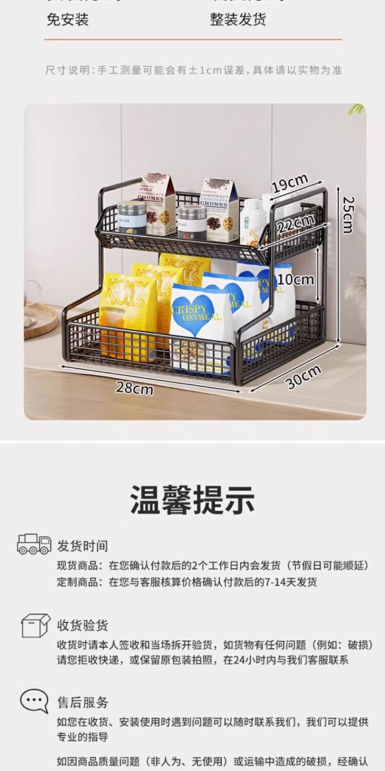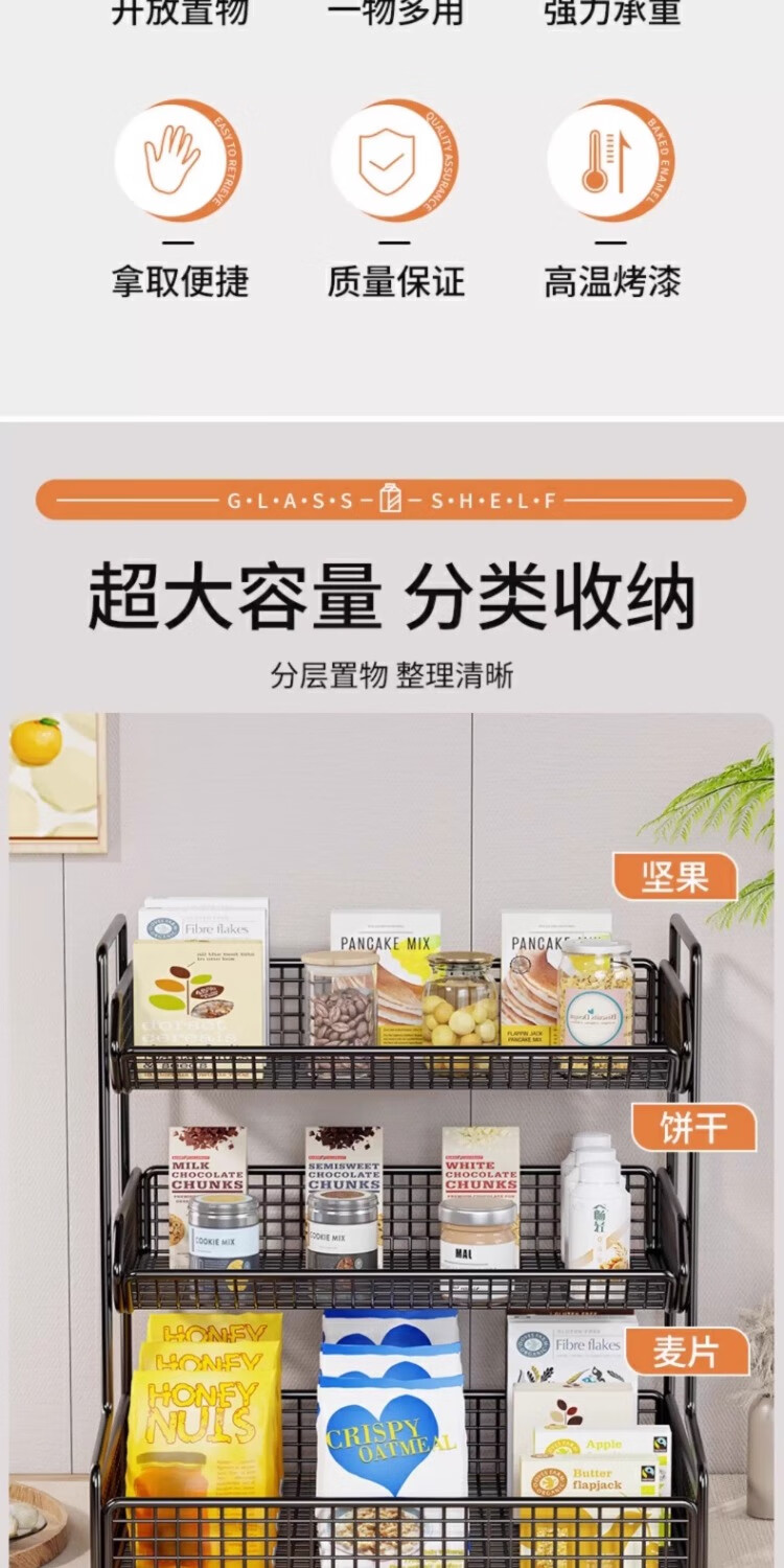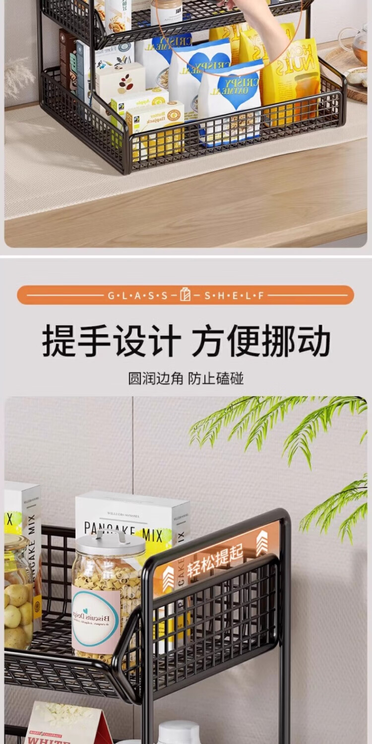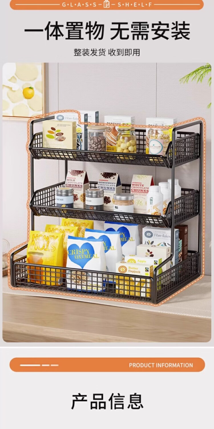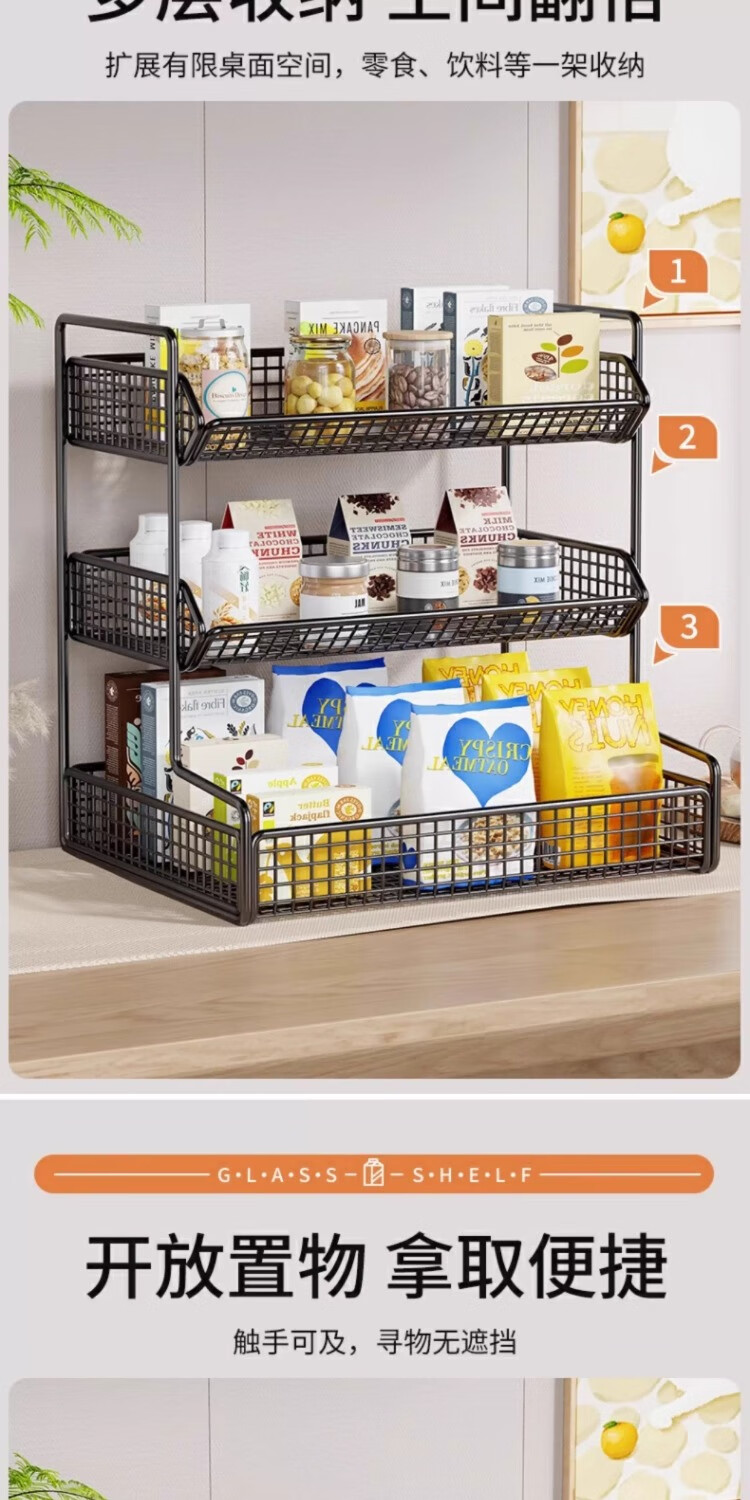 尔思家桌面置物架餐桌收纳架客厅桌上双层杯子茶几水杯台面多层零食神器 三层大号-雅典黑