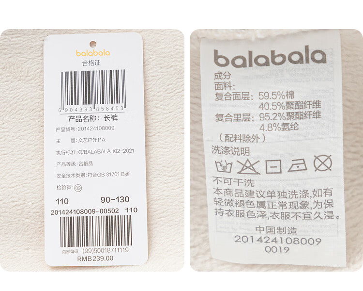 巴拉巴拉童装儿童长裤加绒保暖束脚裤冬裤子201424108009