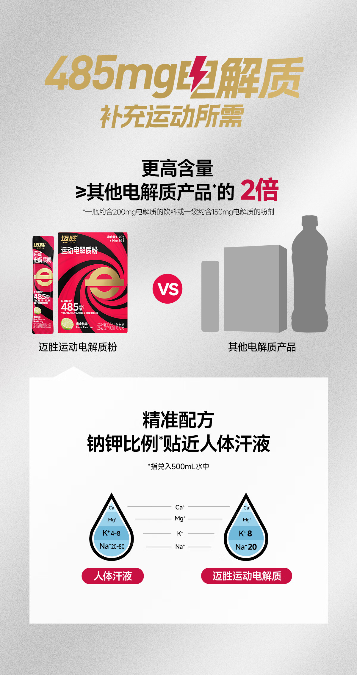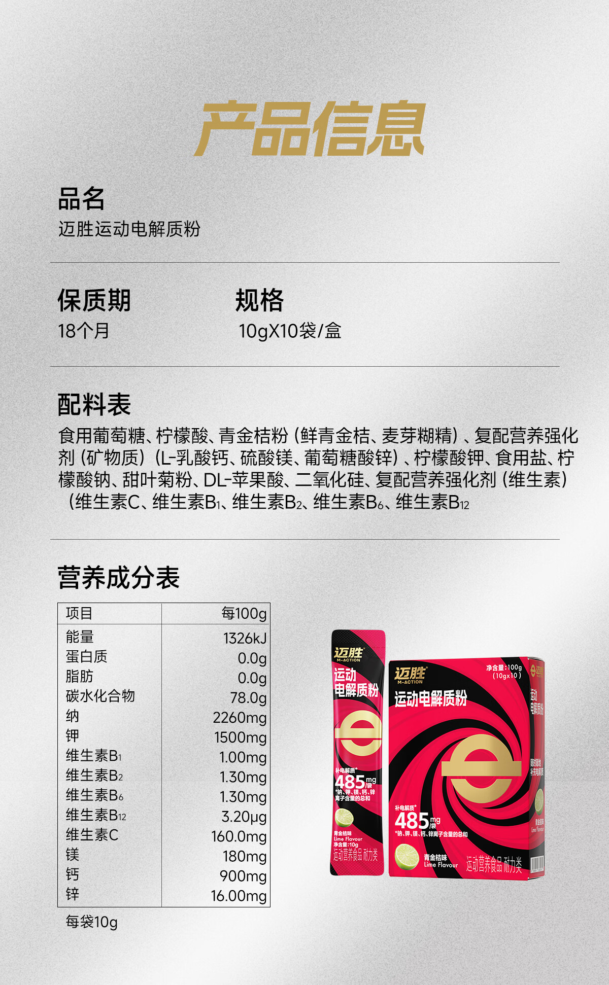迈胜电解质能量饮冲剂粉功能饮料青金桔味耐力运动健身维生素营养补剂 运动电解质粉青金桔味 10袋*2盒
