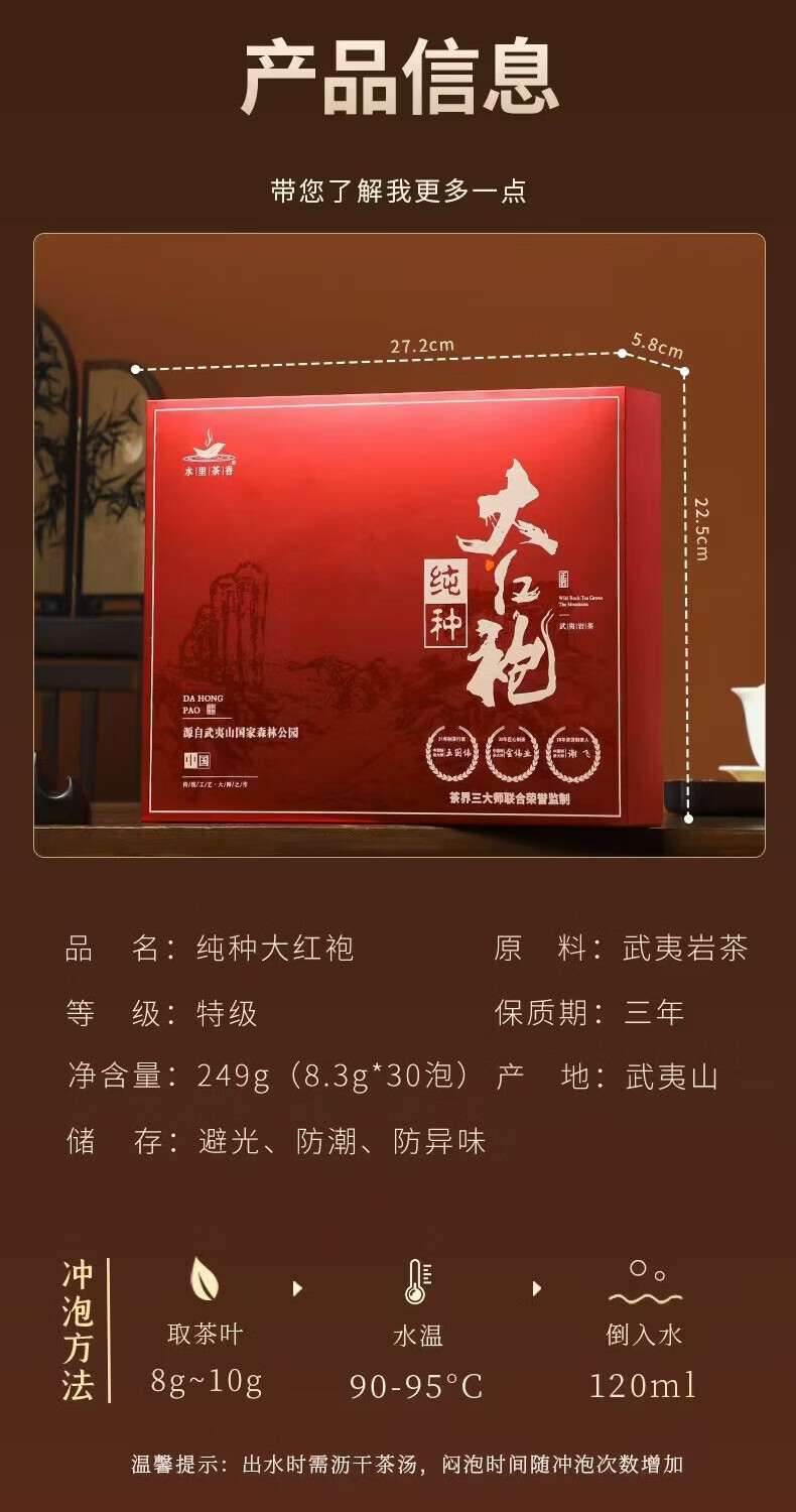 水里茶香武夷岩茶大红袍特级乌龙茶年货节茶礼送长辈亲友简奢礼盒装250g 武夷岩茶-特级大红袍简奢礼盒装250g