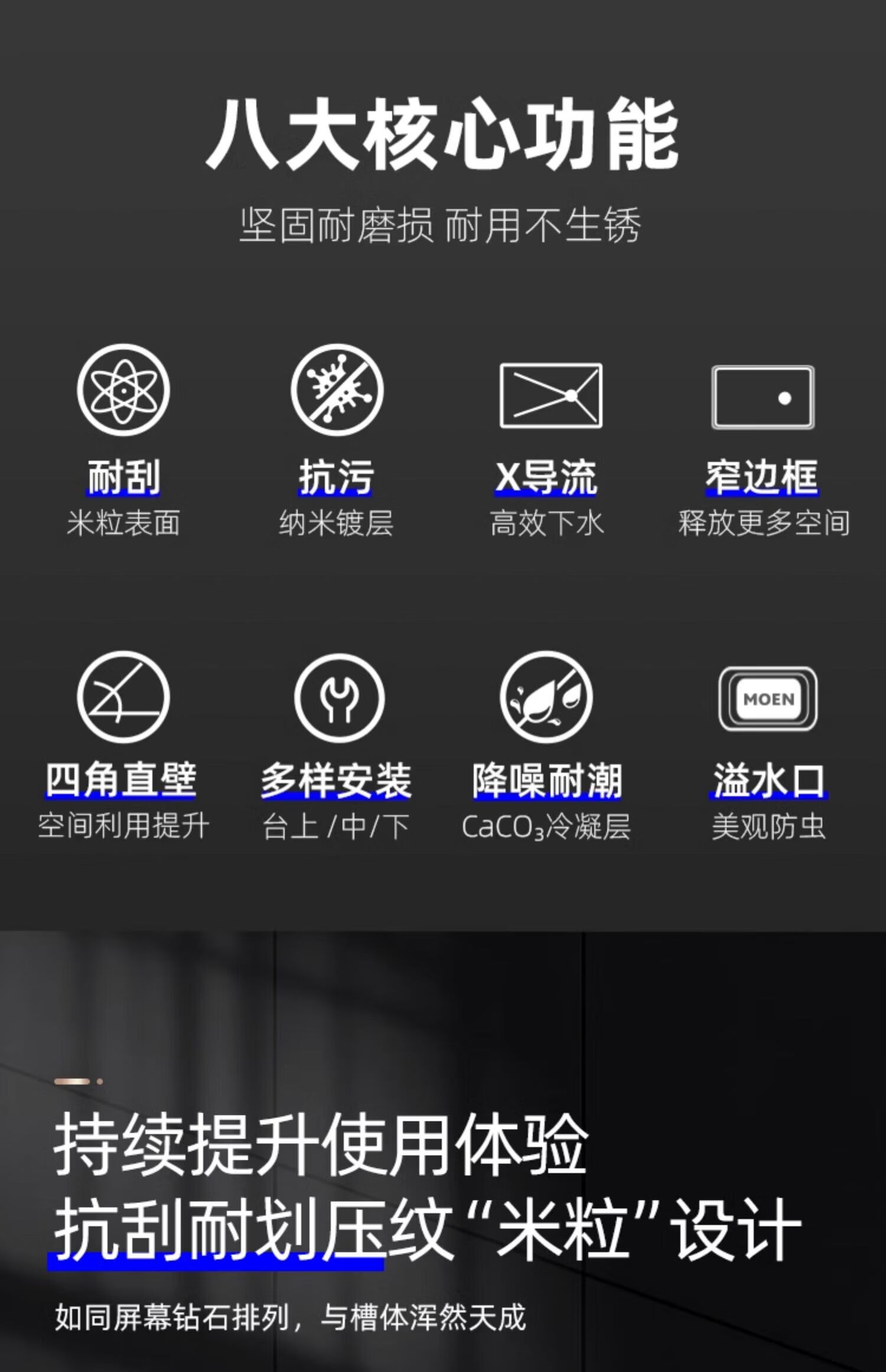 摩恩(MOEN)智能厨房小米粒压纹大单槽枪灰色水光能龙头感应魔盒 小米粒压纹龙头+水光能龙头+感应魔盒