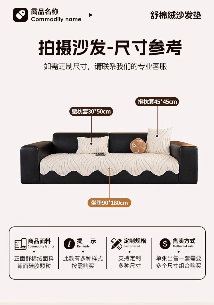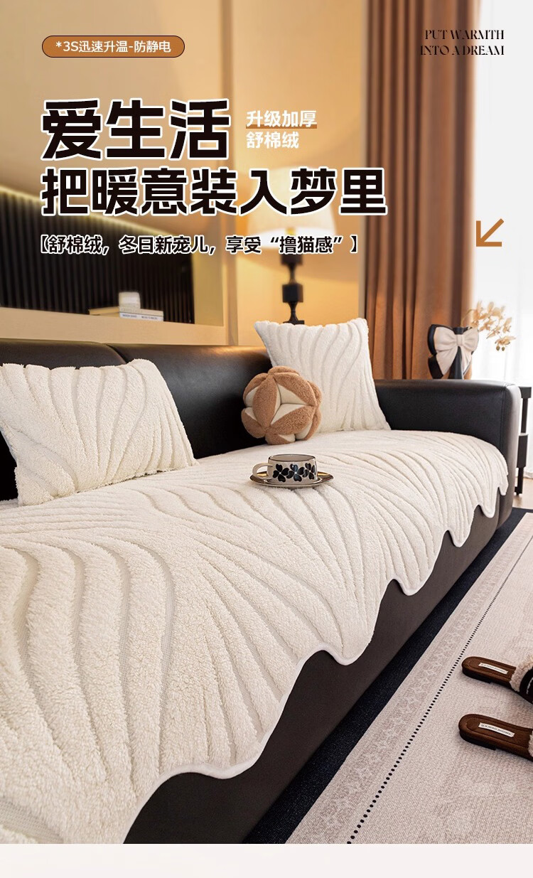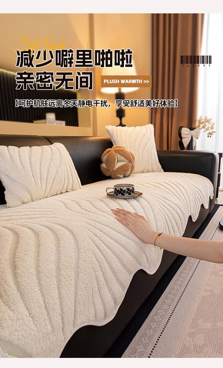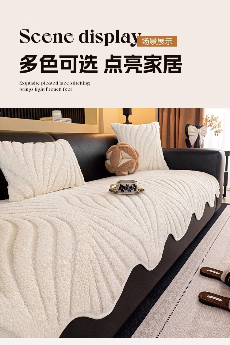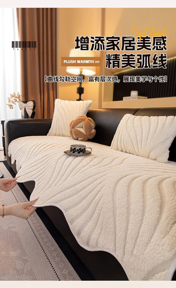 金拾美月冬季半边绒沙发盖布巾2026新款奶油风沙发垫一整张全盖防滑套罩 盖巾雅缦-米白 180cm*130cm (适用于单人位/脚踏)