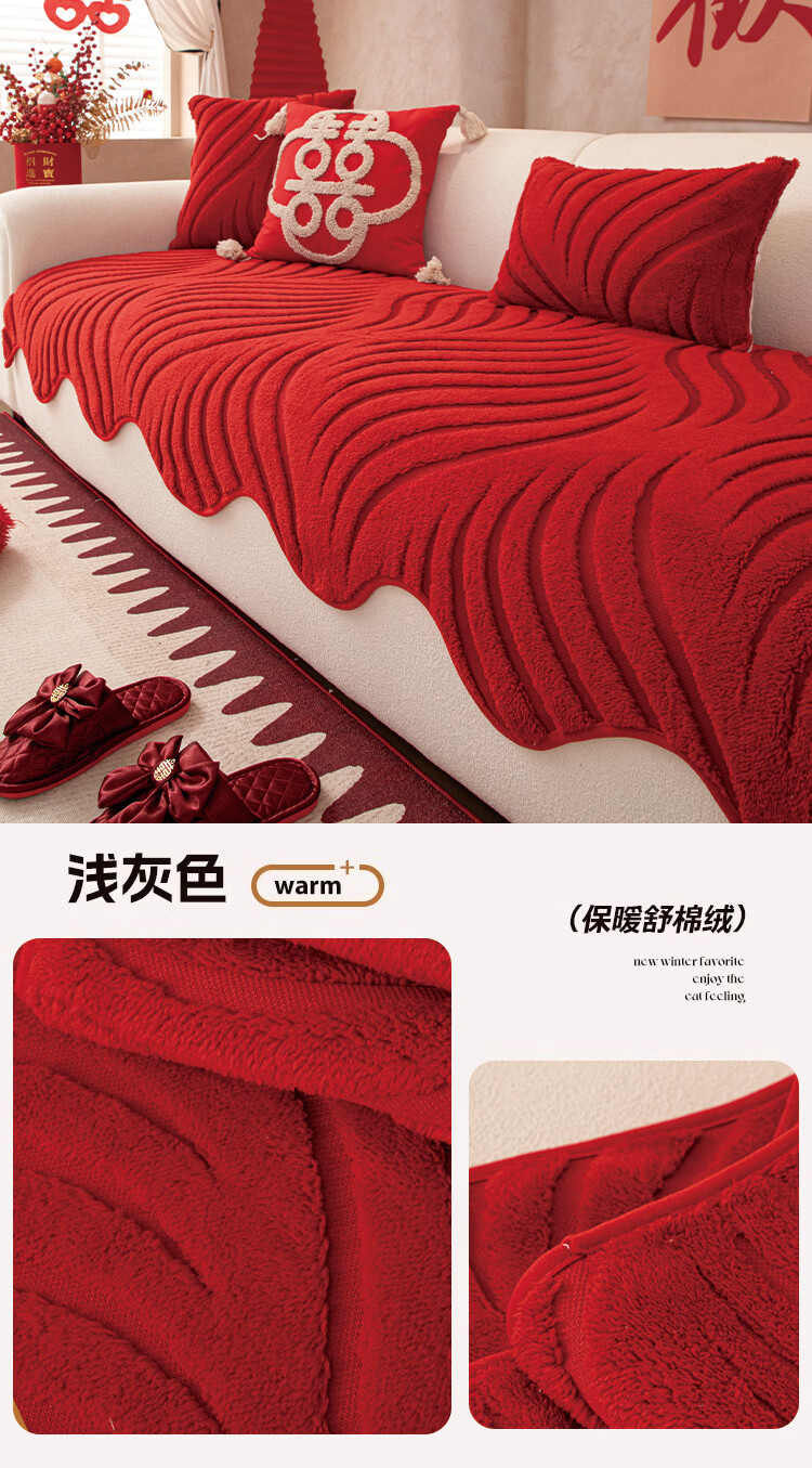 金拾美月喜庆新年沙发巾2026新款高克重雪尼尔沙发套四季通用防滑氛围感 好运满满 180cm*130cm (适用于单人位/脚踏)