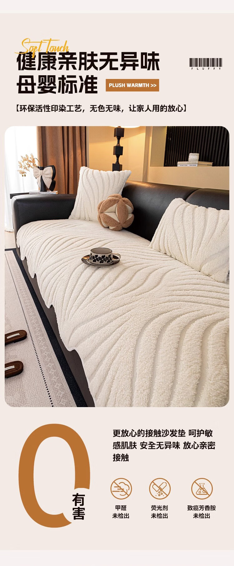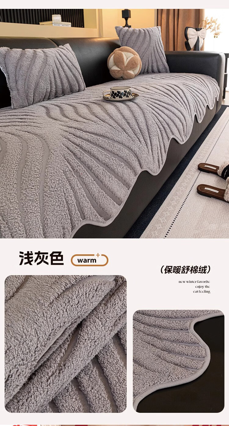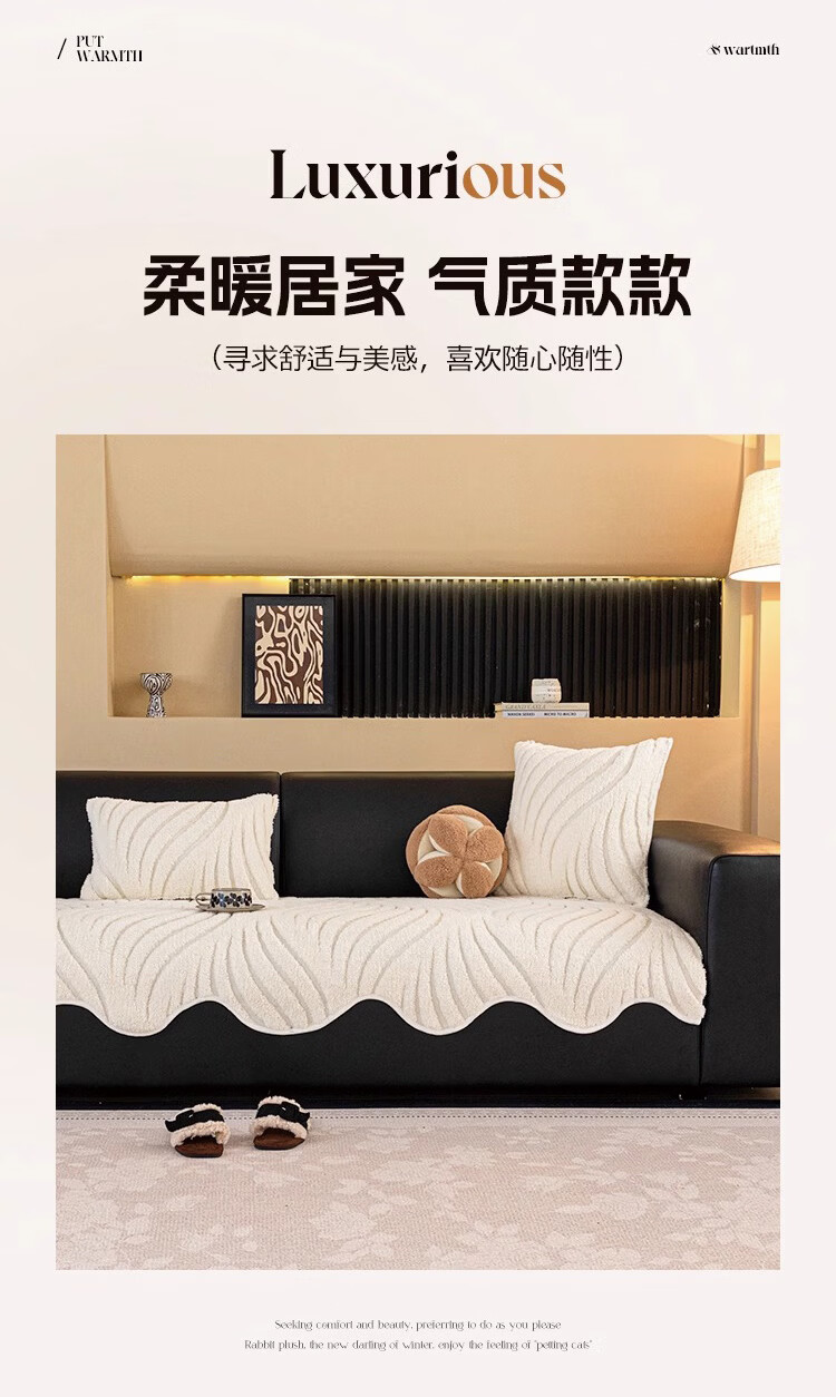 金拾美月2026新款高级感直排皮沙发垫子冬加厚毛绒坐垫套固定防滑盖布巾 异形冬临-米白色 70cm*70cm