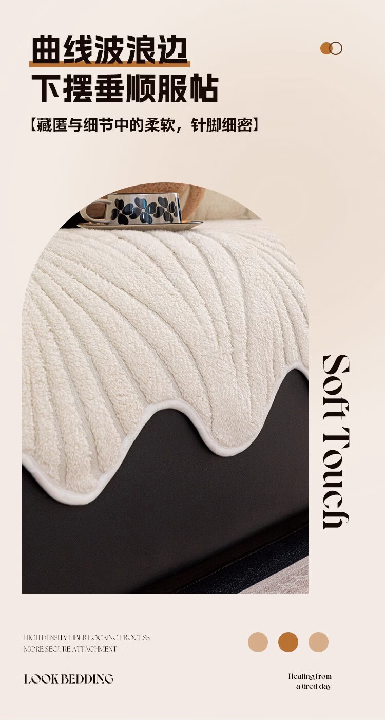 金拾美月半边绒沙发盖布巾冬2026新款沙发垫轻奢高级感简约现代防滑套罩 心愿沙发巾-黑棕 180cm*130cm (适用于单人位/脚踏)