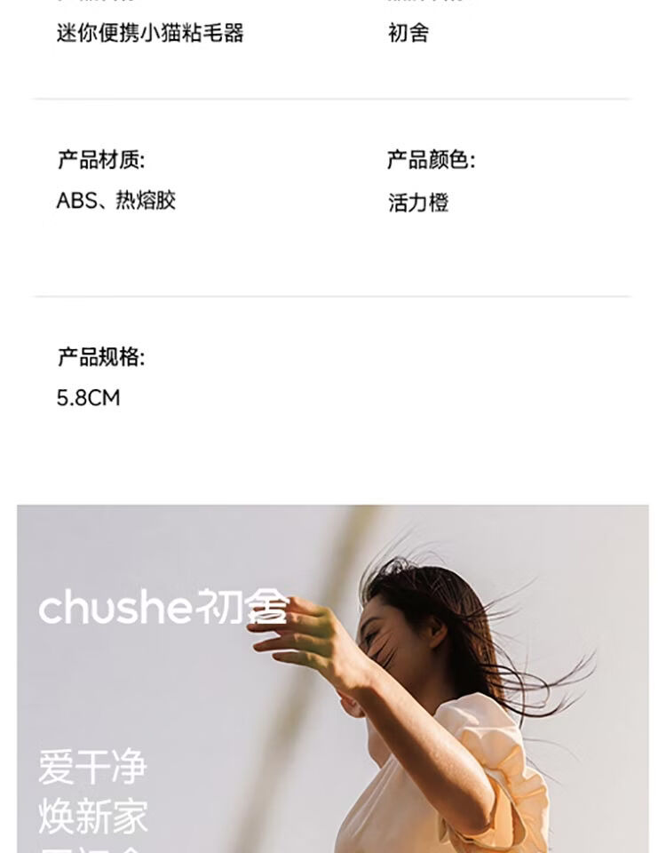 初舍(CHUSHE)便携粘毛器5.8cm120撕衣服粘毛神器养猫专用粘猫毛卷毛器滚筒去尘