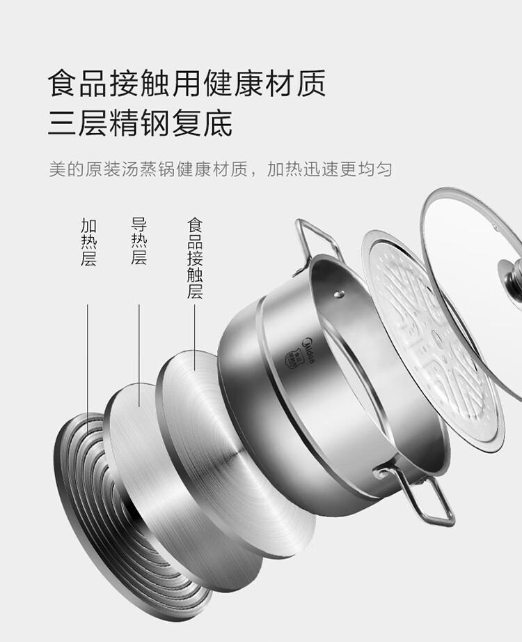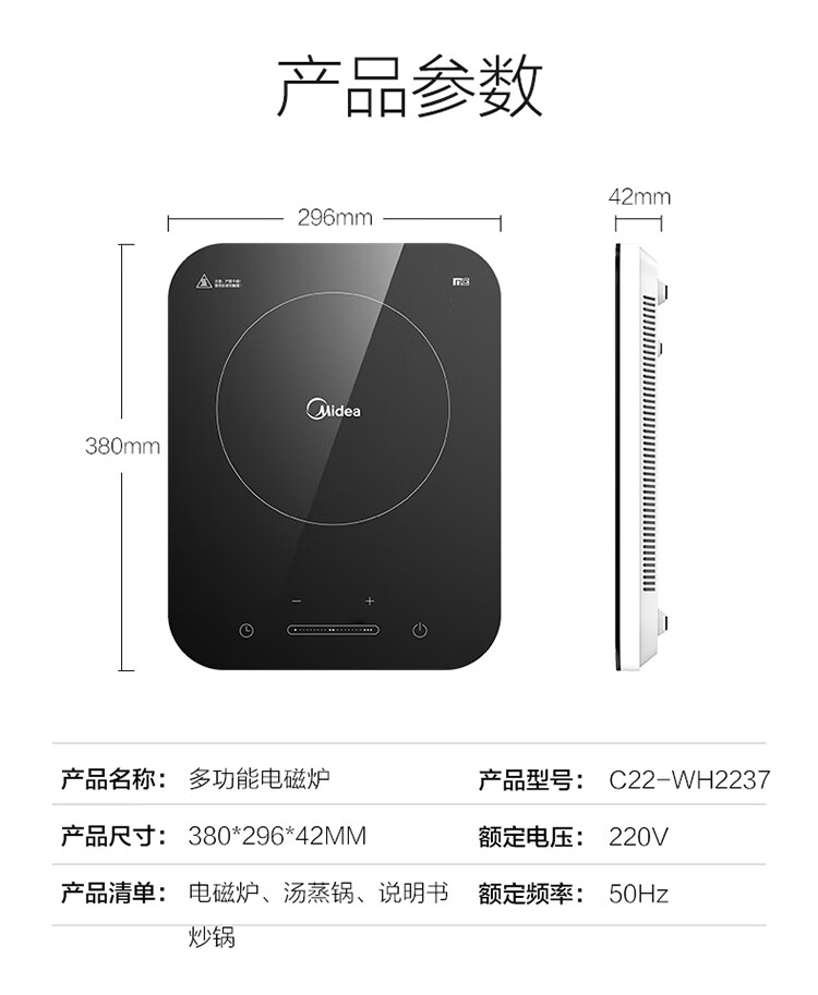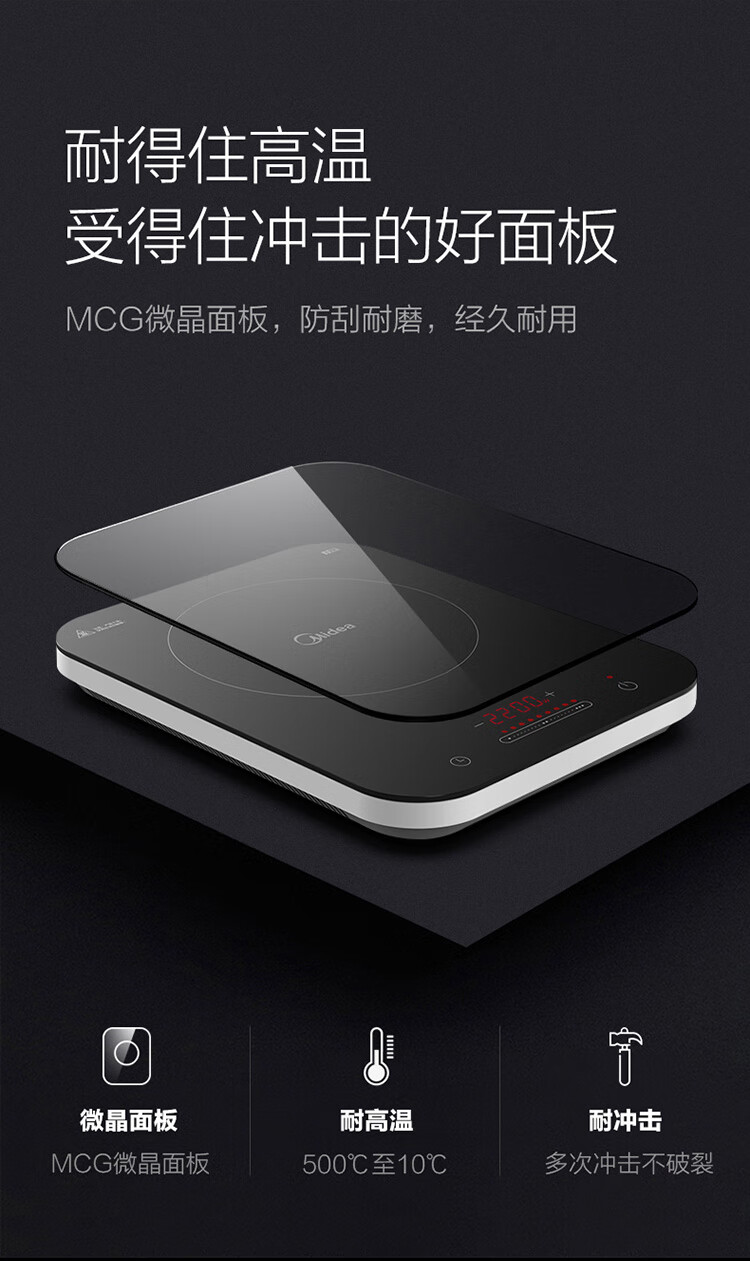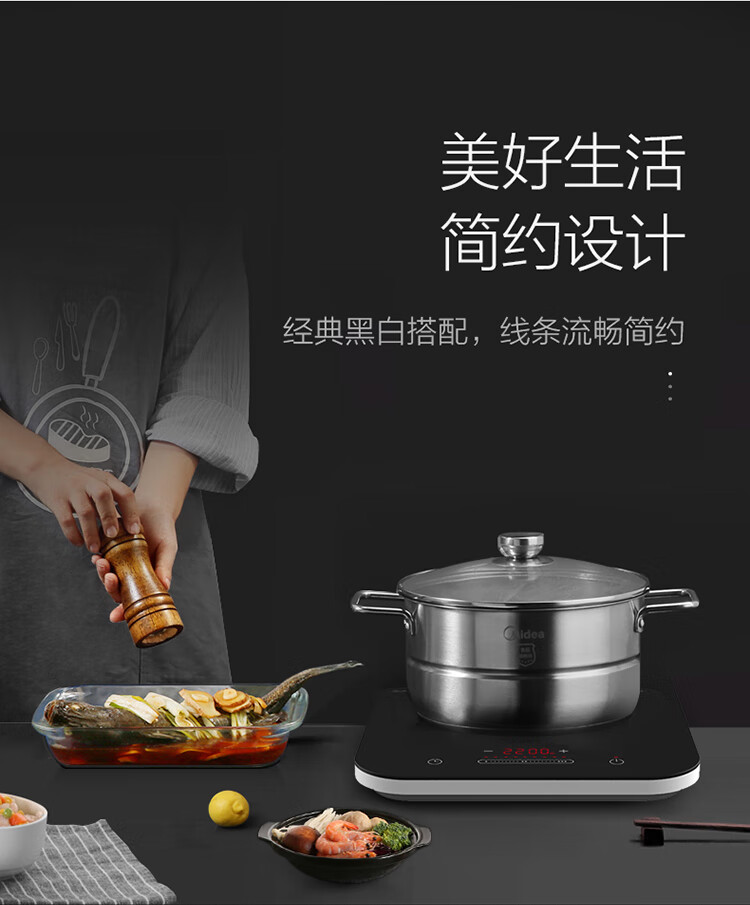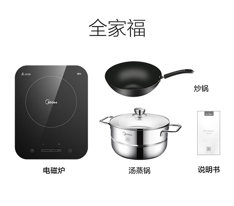 美的(Midea)电磁炉一套带锅双锅 德国英飞凌IGBT 微晶大面板4D防水家用电磁炉大功率炒菜锅全套 恒匀火电池炉 【配赠蒸锅+炒锅】专利恒匀火 滑动式控温