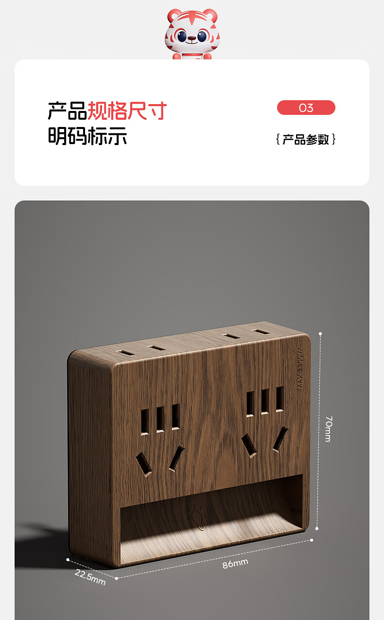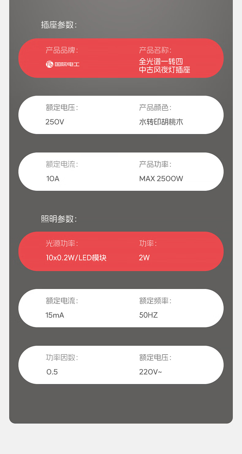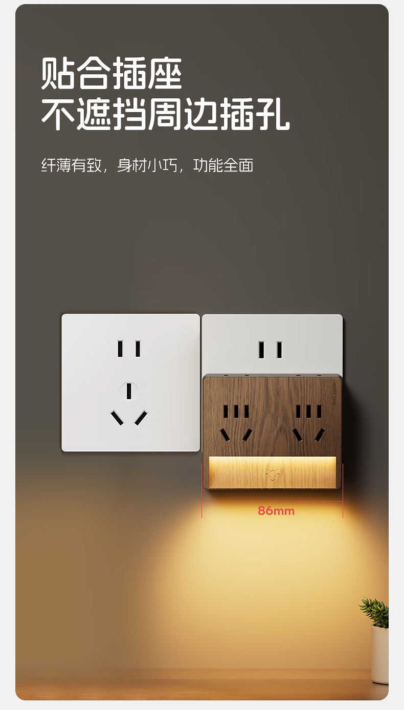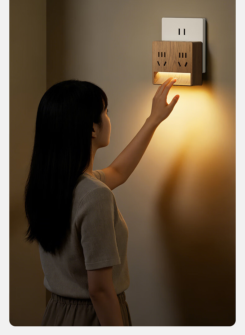 国际电工卧室全光谱中古风一转四小夜灯插座无线触摸感应墙壁电源拓展插座 一转四夜灯插座【触摸感应】