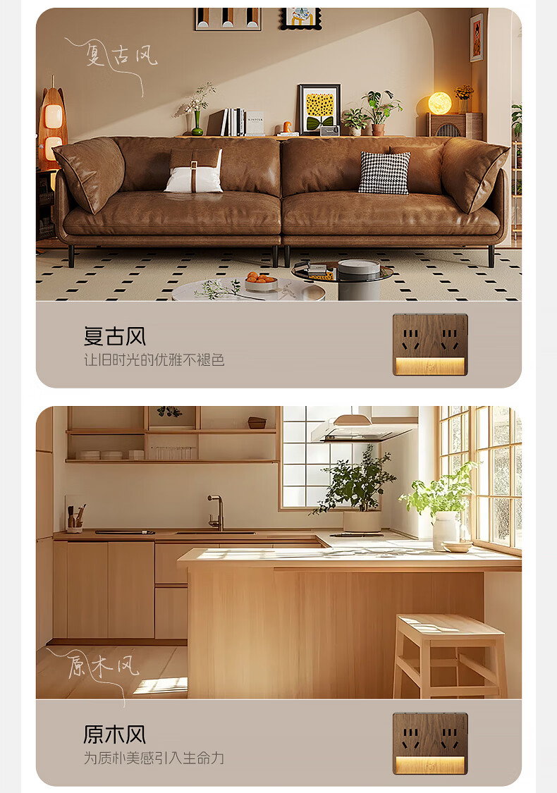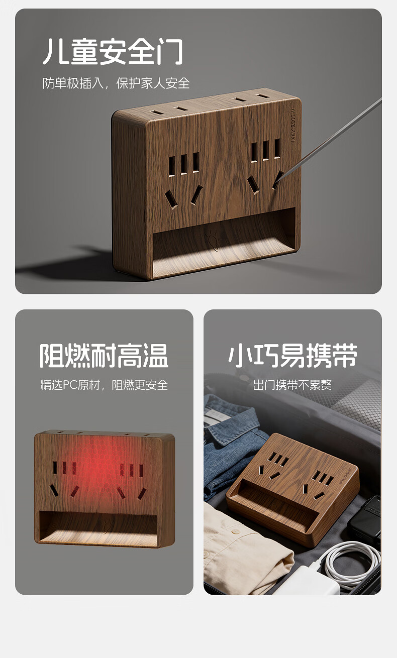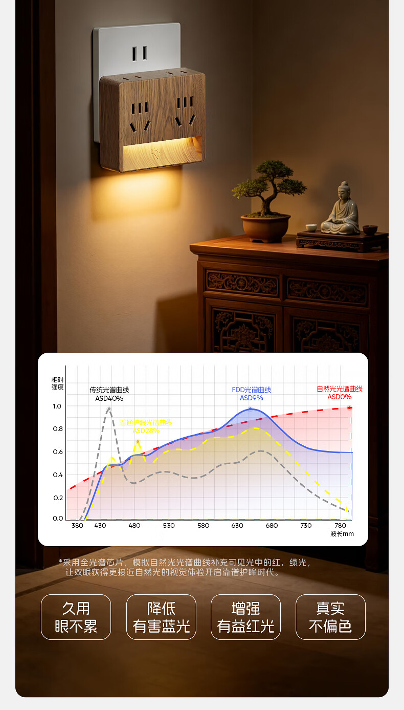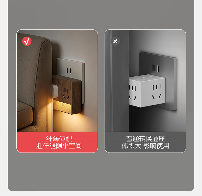 国际电工卧室全光谱中古风一转四小夜灯插座无线触摸感应墙壁电源拓展插座 一转四夜灯插座【触摸感应】