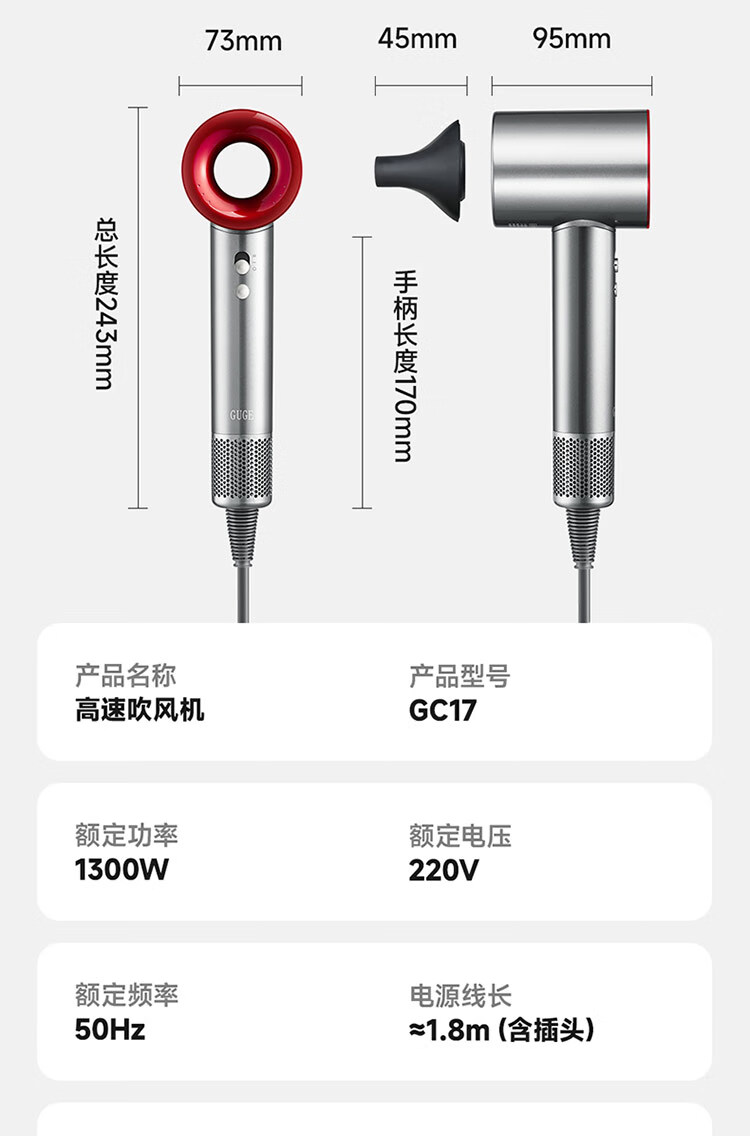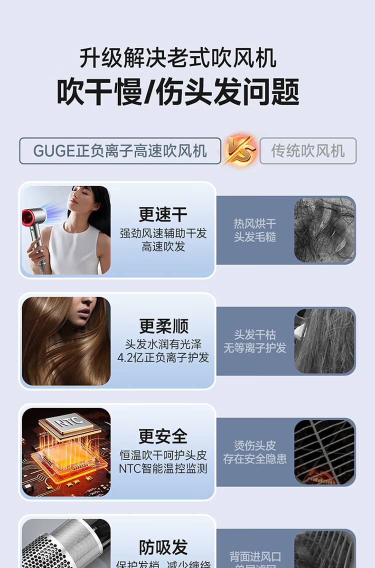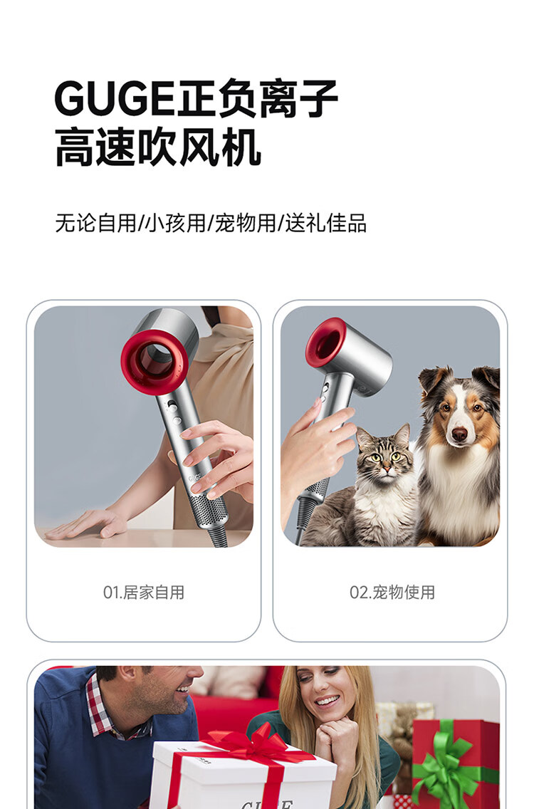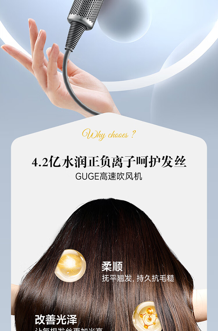 谷格(GUGE)德国无叶吹风机家用轻音负离子大功率不伤发吹风筒高速护发电吹风差旅便携送礼GC17新年情人节礼物