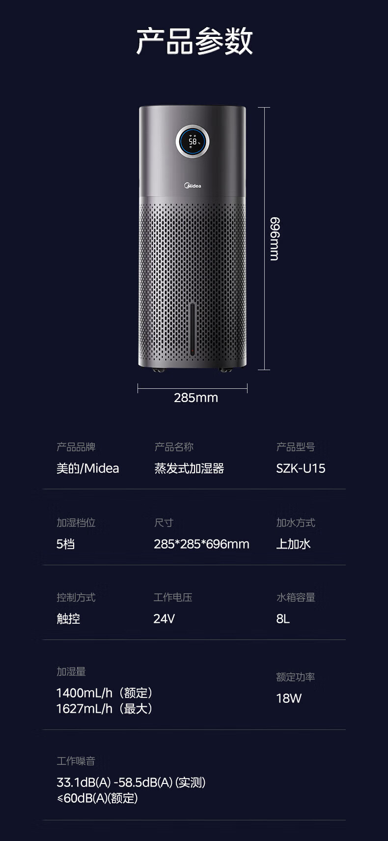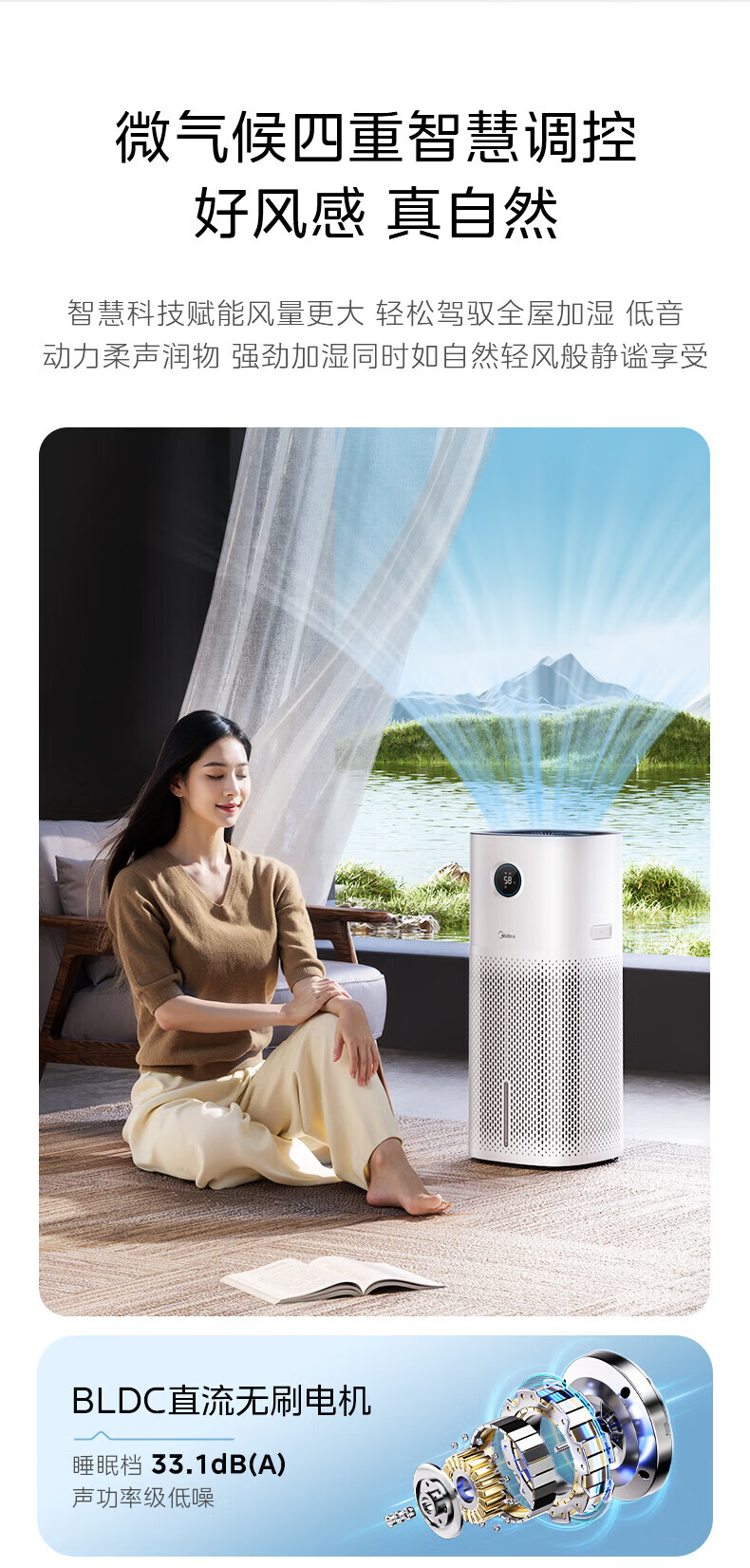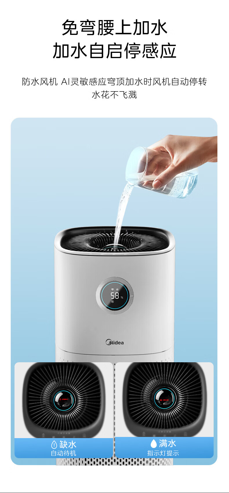 美的(Midea)全屋加湿】无雾空气加湿器 AI智能调节加湿润肤雾化器 全屋加湿轻音不扰眠 母婴级 别墅适用加湿器 【全屋加湿140㎡】SZK-U15