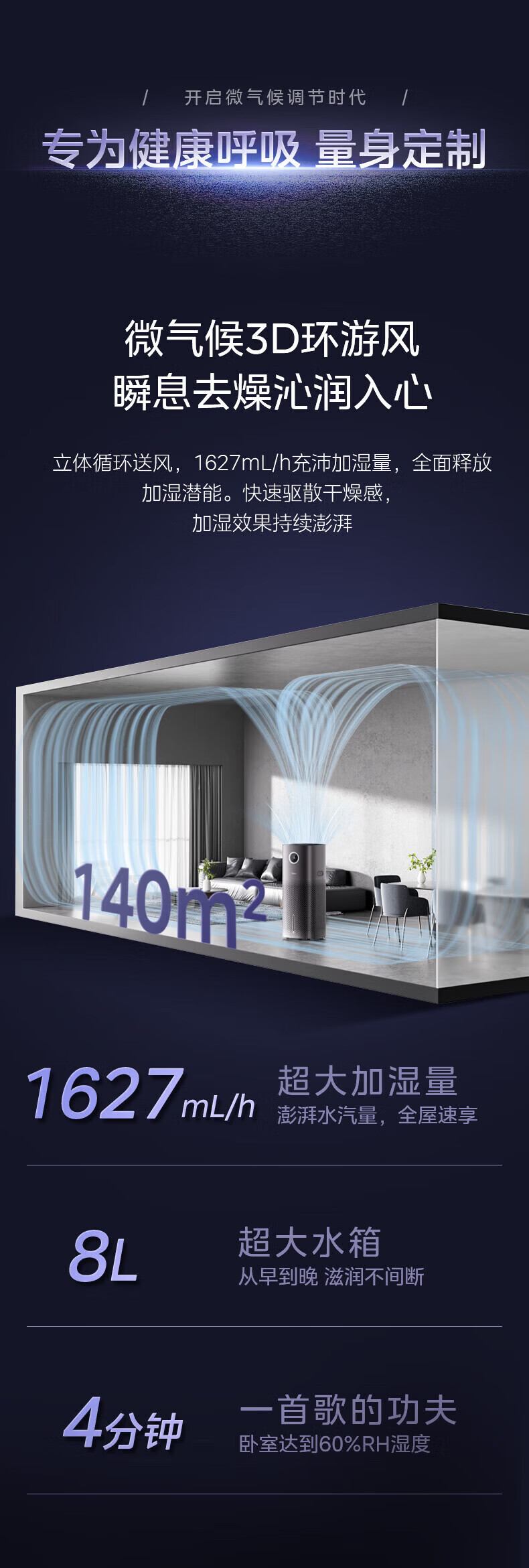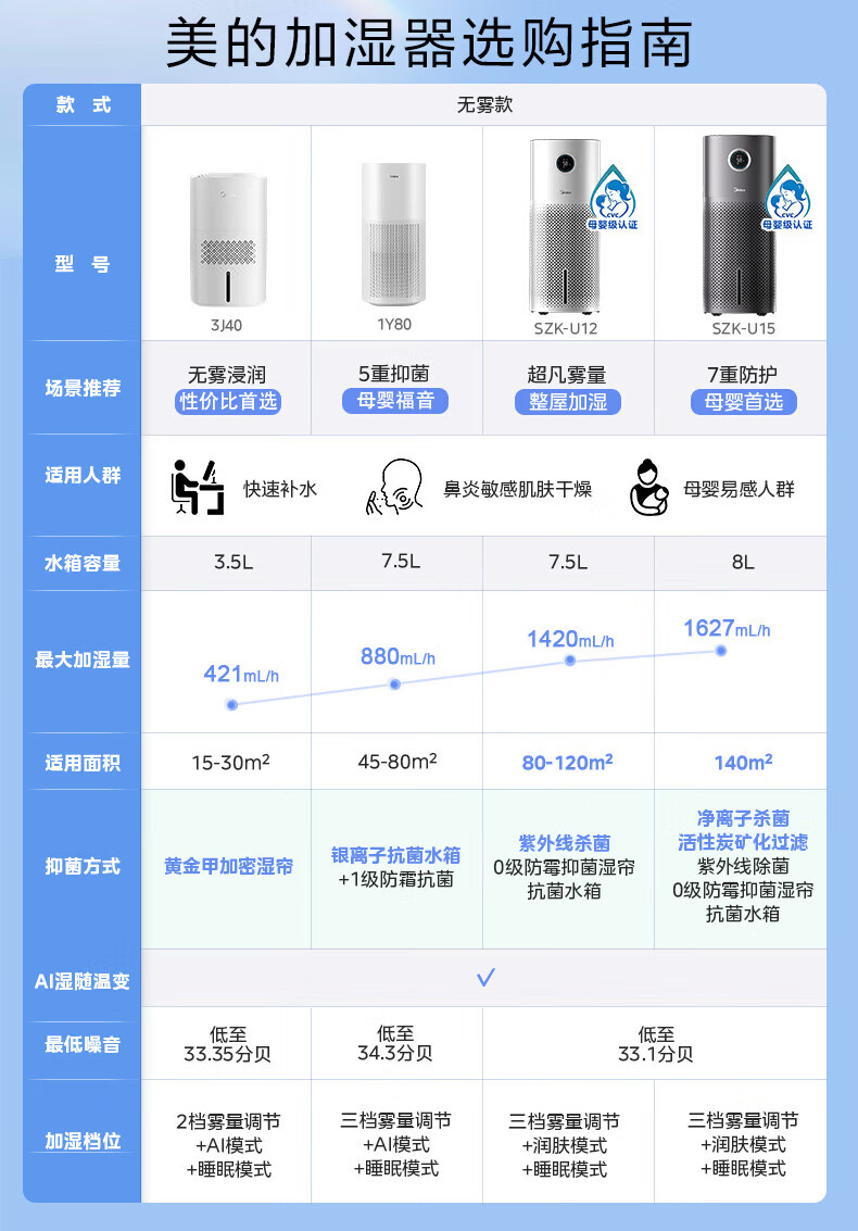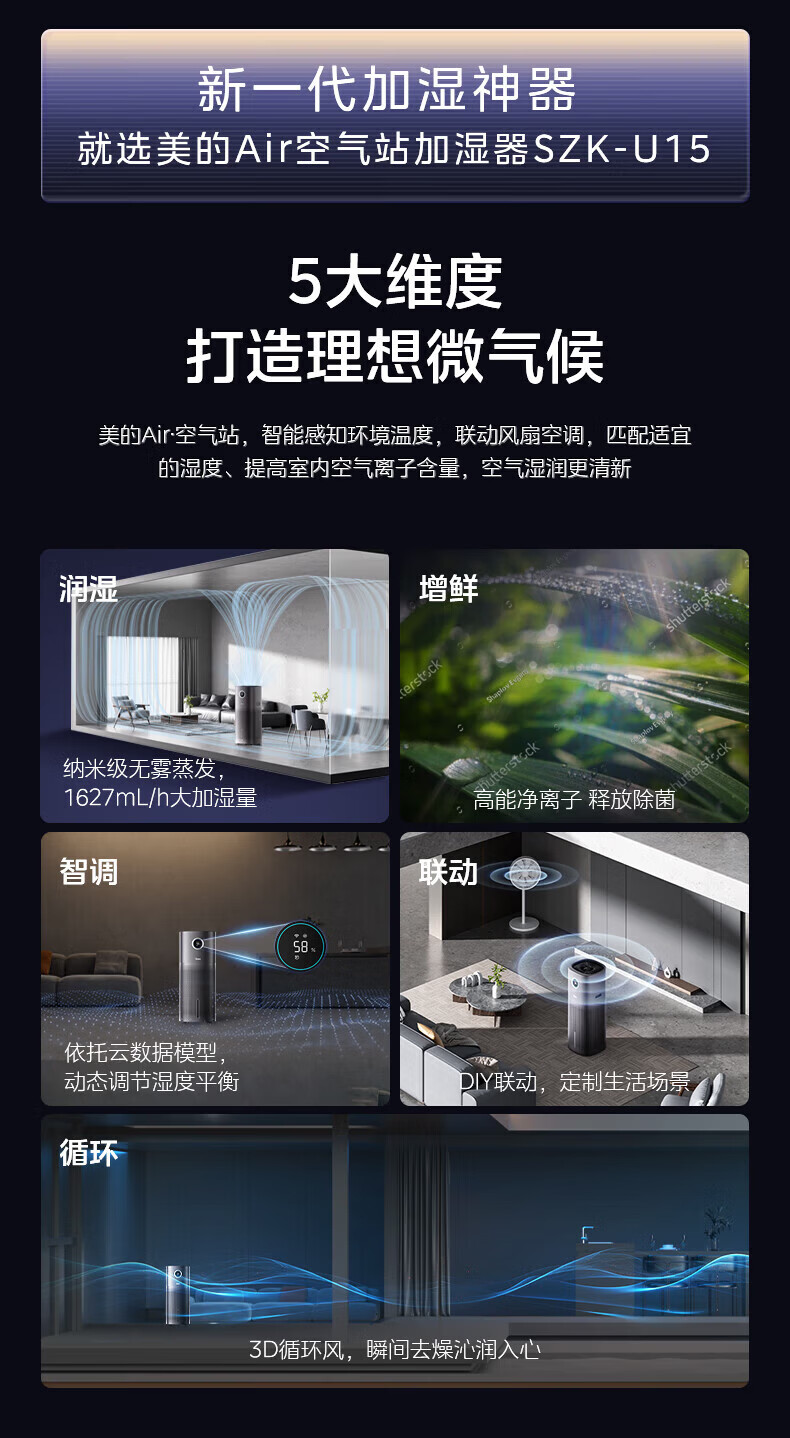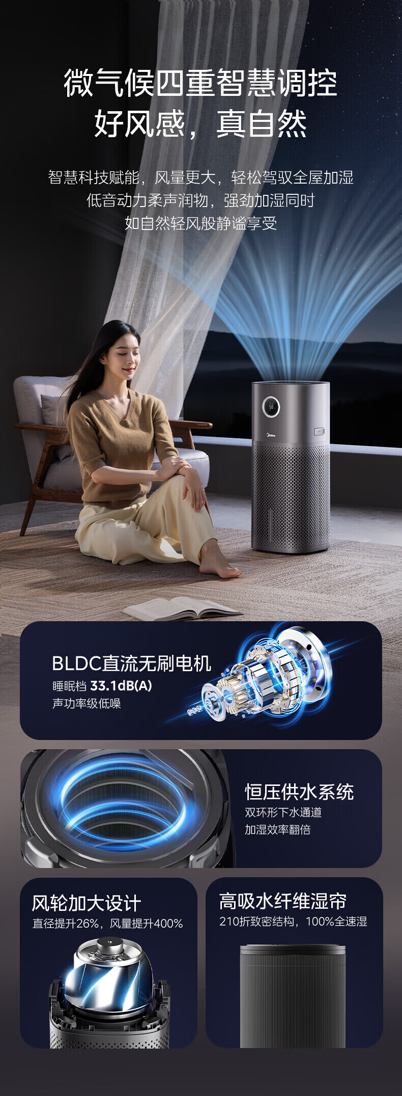 美的(Midea)全屋加湿】无雾空气加湿器 AI智能调节加湿润肤雾化器 全屋加湿轻音不扰眠 母婴级 别墅适用加湿器 【全屋加湿140㎡】SZK-U15