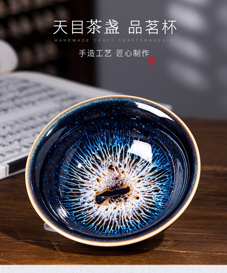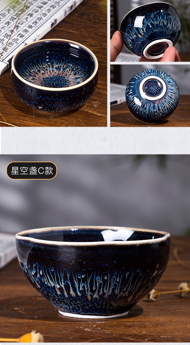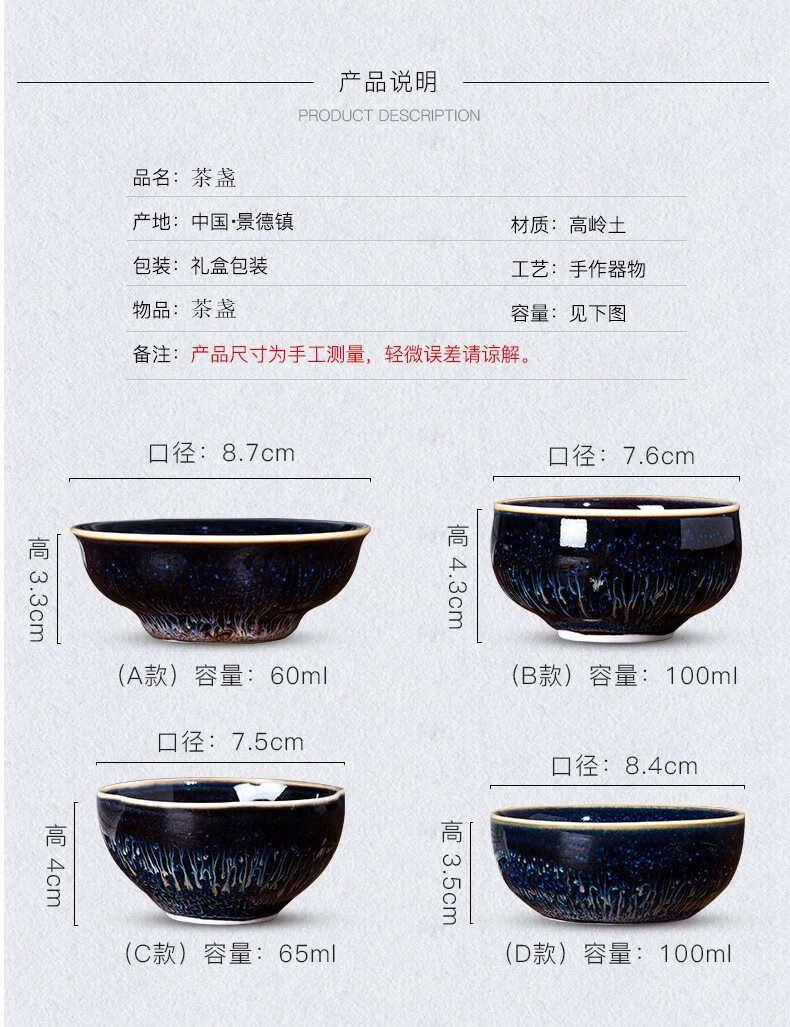 鋆钰 建盏茶杯陶瓷杯办公家用功夫茶杯茶盏 窑变天目茶具建盏品茗杯功夫小茶杯子主人杯单杯 D款普洱杯 天目釉