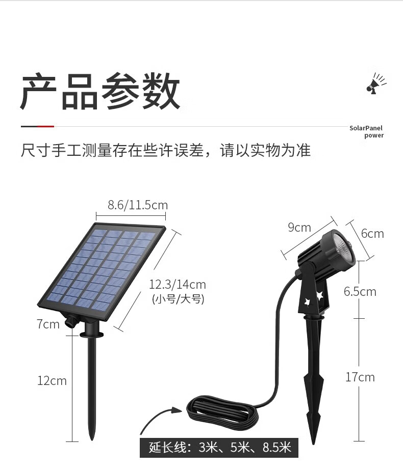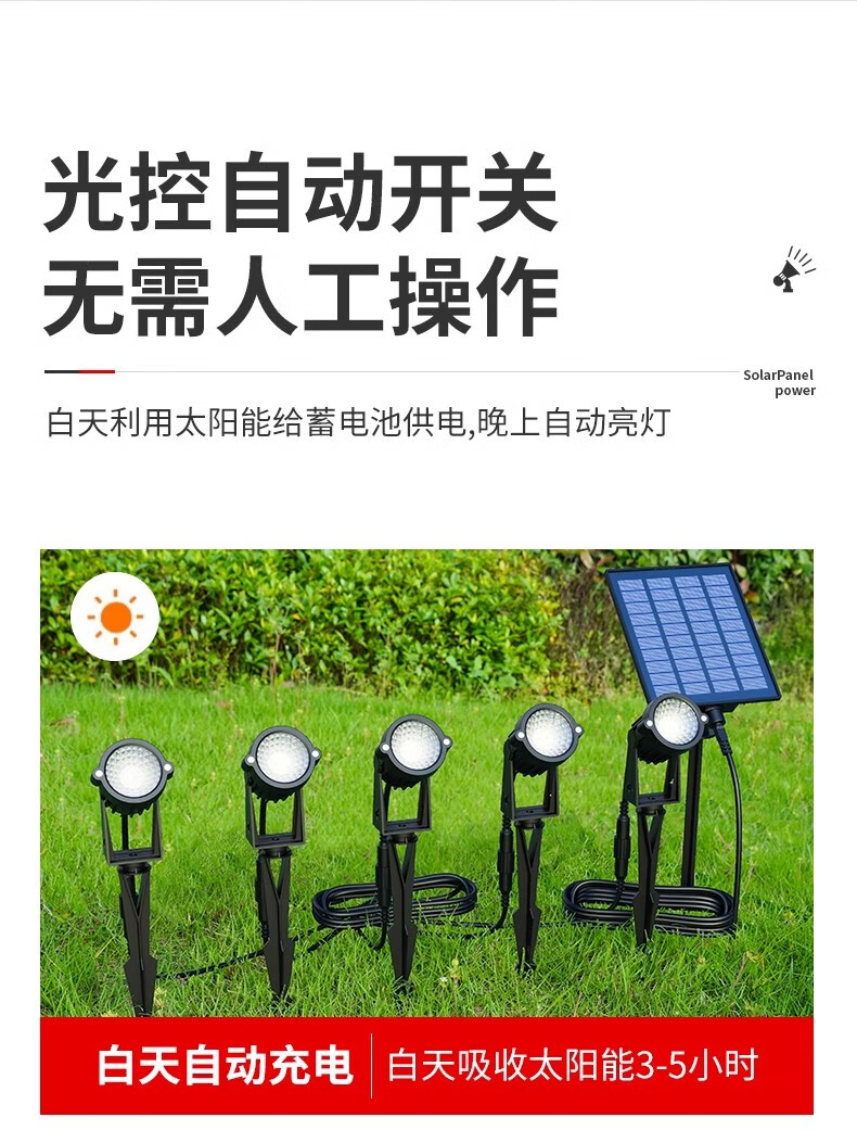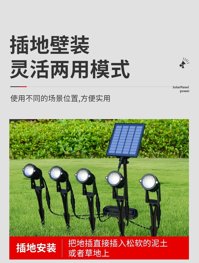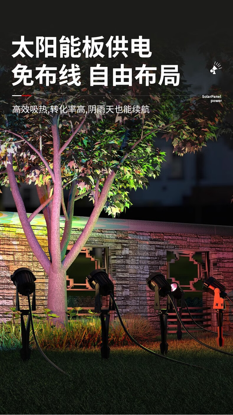 拉伯塔太阳能射灯户外超亮防水照树灯家用室外景观庭院花园氛围草坪灯 1拖1【3米线】太阳能照树灯 【白光】